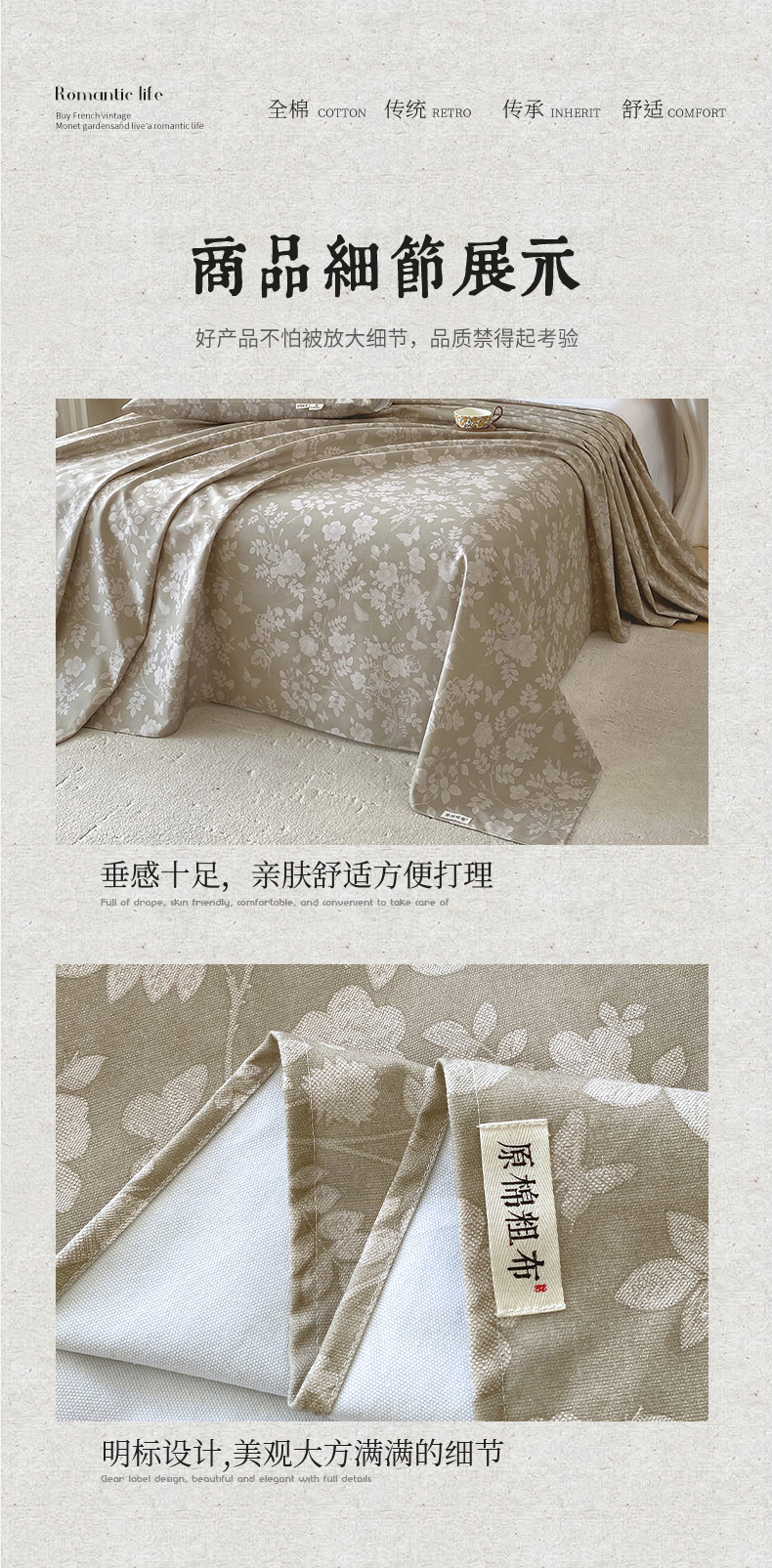 商品名称:春皖家纺 2026春夏新品简约款老粗布系列床单单品床单床单单件 幽色