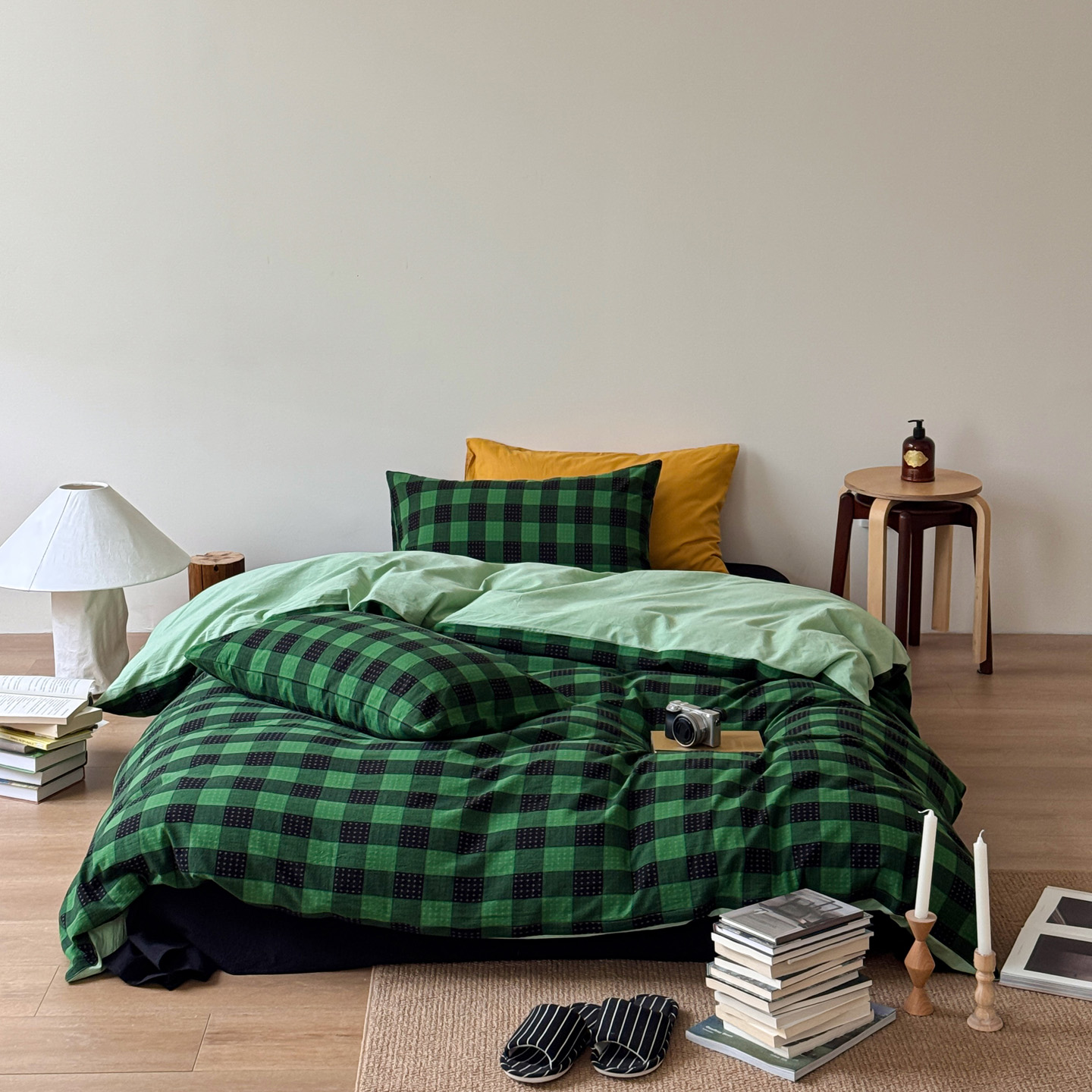 当前位置: 91家纺网 > 商品网购 > 床品套件 > 四件套 > 全棉普通四件套 > 艾沁家纺 2026新款复古风全棉色织水洗提花四件套 摩卡灰棋盘格十字提花主图