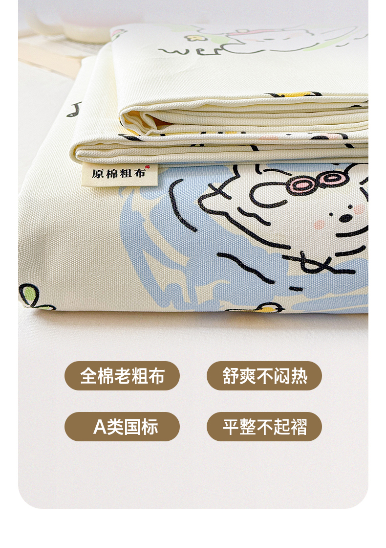 • 91家纺网 家纺一手货源 找家纺 名兮家居 2026新款全棉A类卡通简约时尚老粗布床单 休闲时光