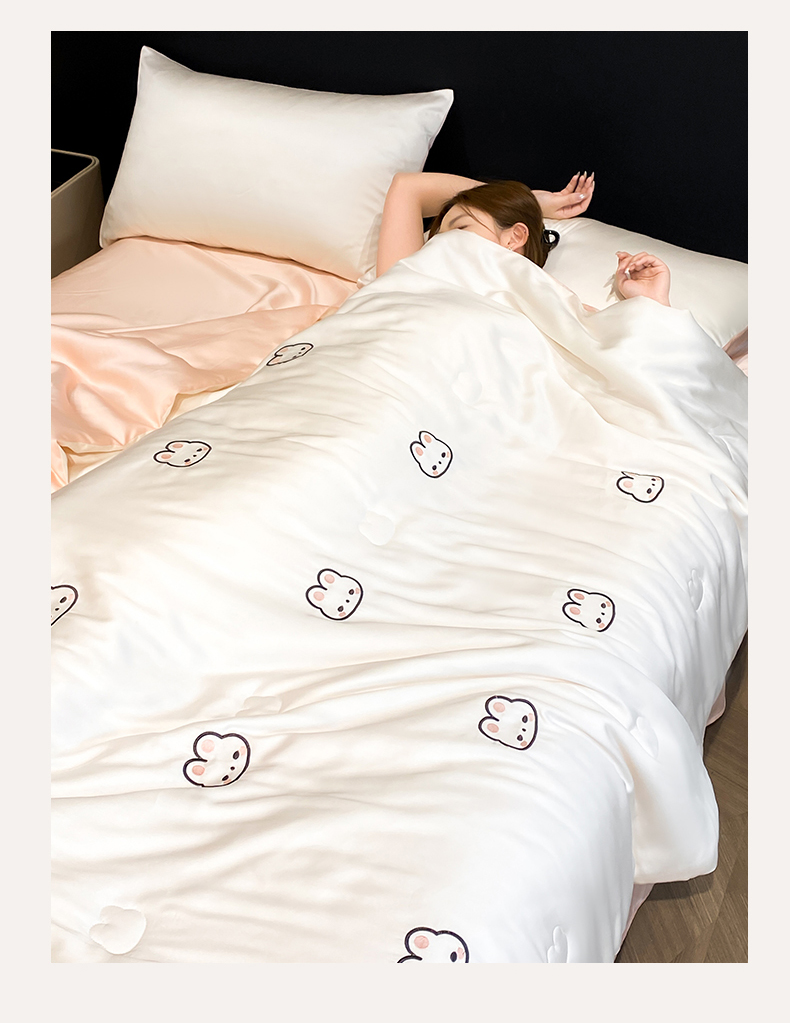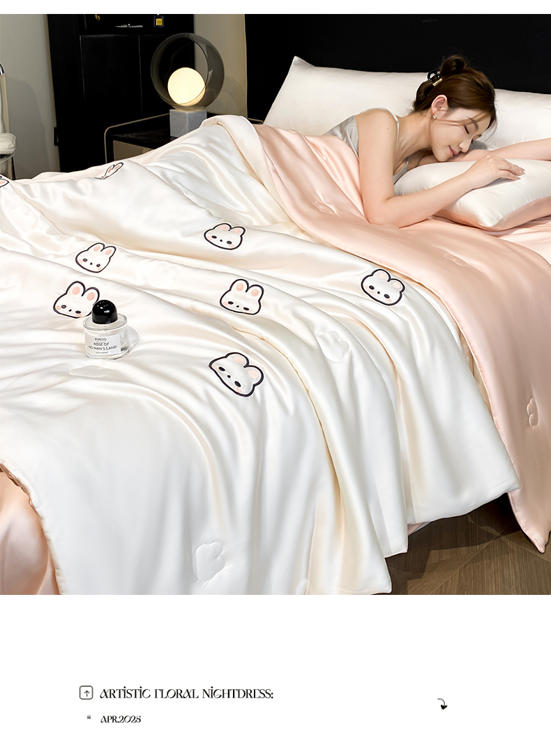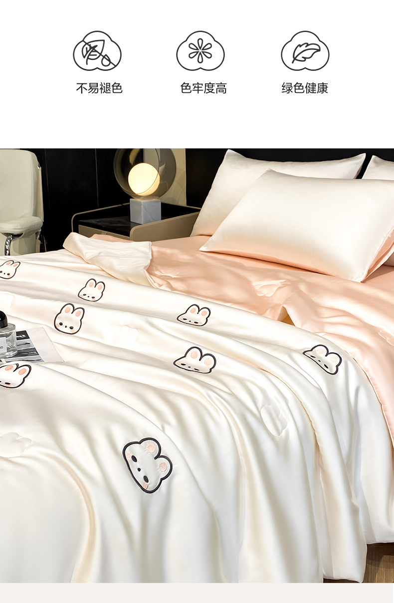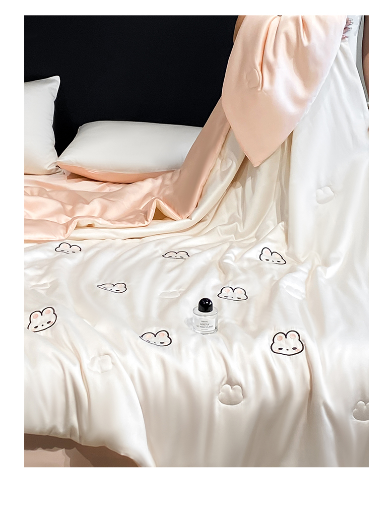 • 91家纺网 家纺一手货源 找家纺 无界 2026新款水洗真丝夏被-散点-贝尔 贝尔 元气白桃+半熟蜜桃(兔子)