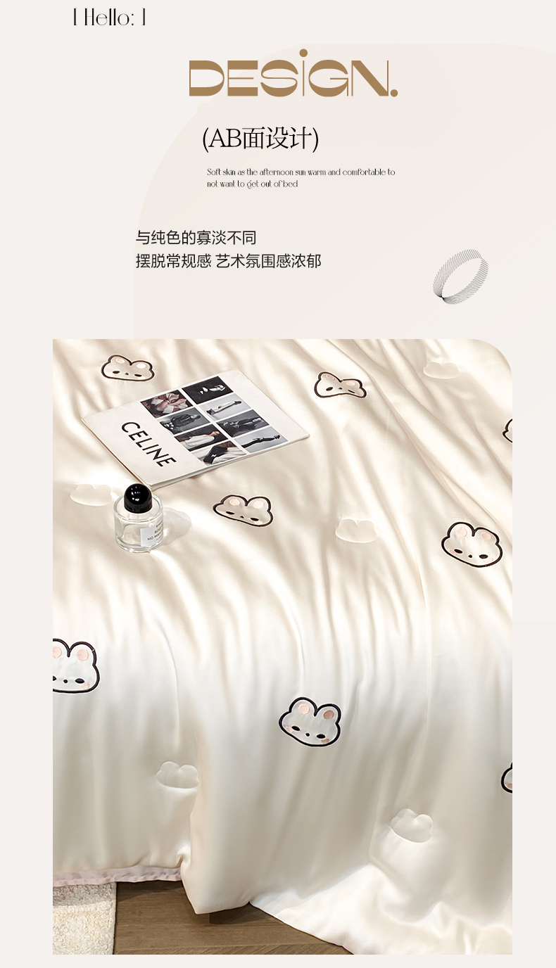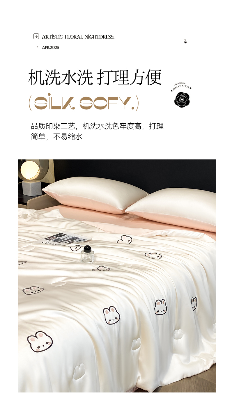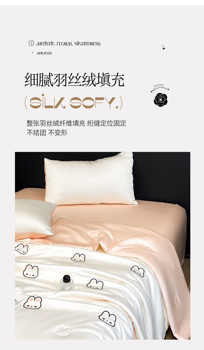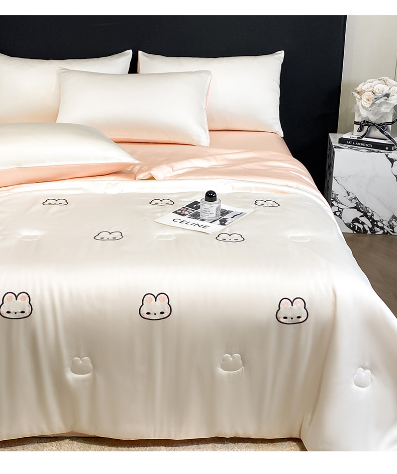 • 91家纺网 家纺一手货源 找家纺 无界 2026新款水洗真丝夏被-散点-贝尔 贝尔 元气白桃+半熟蜜桃(兔子)