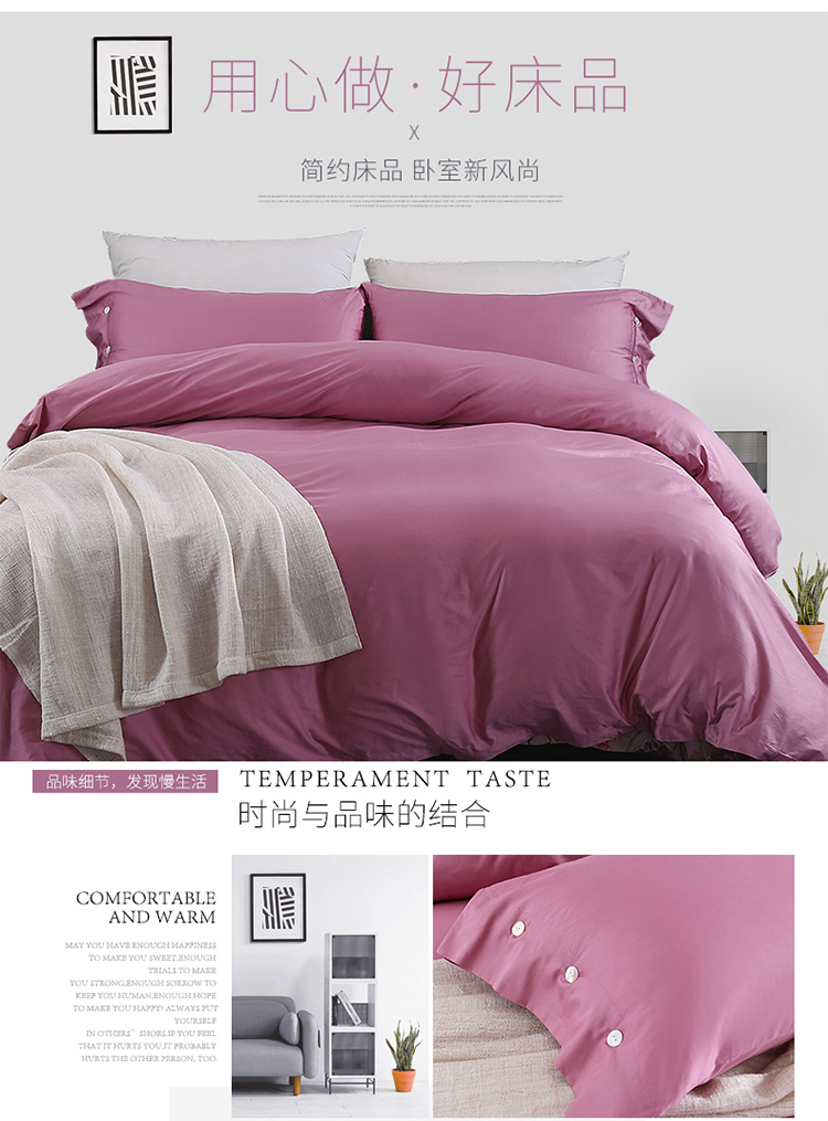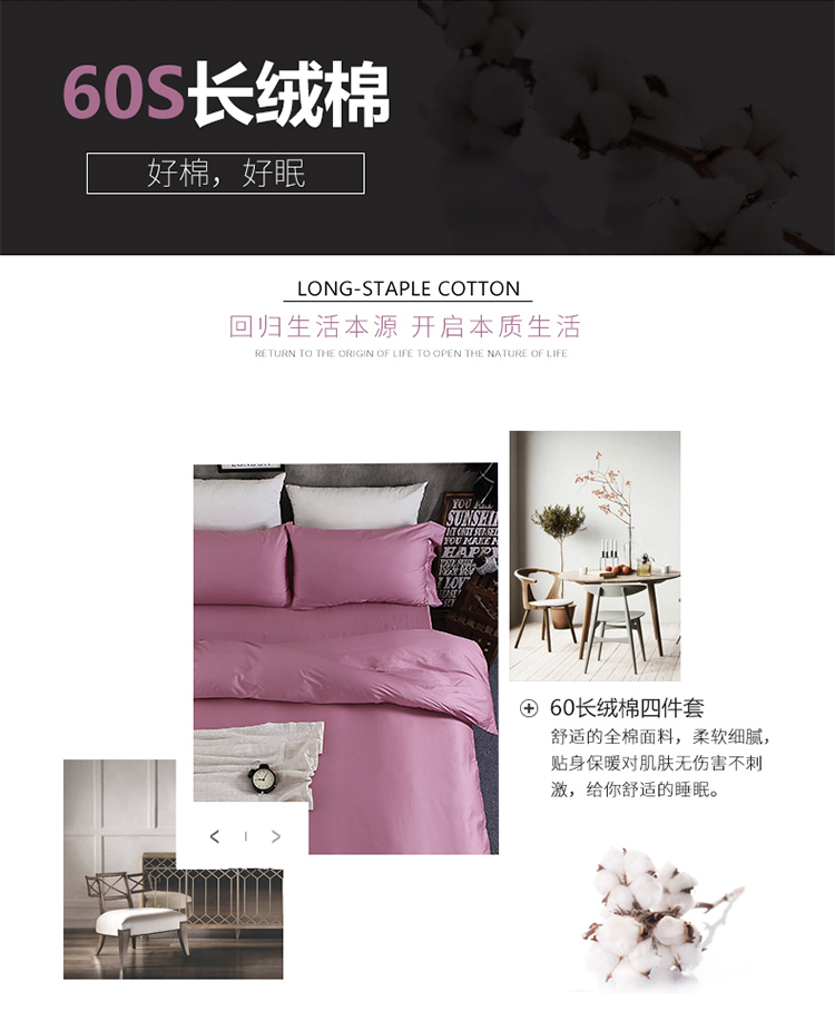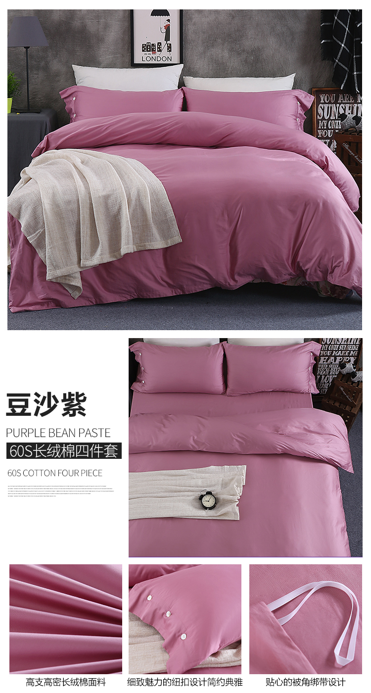 当前位置: 91家纺网 > 商品网购 > 床品套件 > 四件套 > 长绒棉四件套 > 太古汇家居 60长绒棉(纯色)四件套 豆沙紫TGH016C