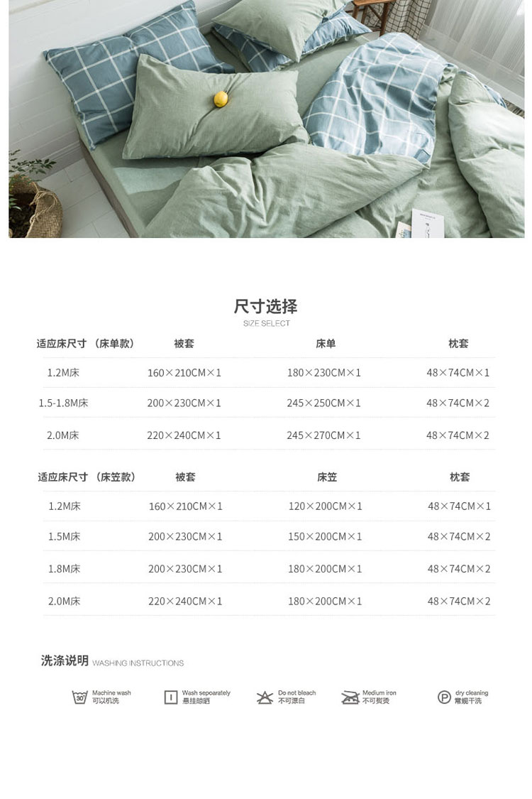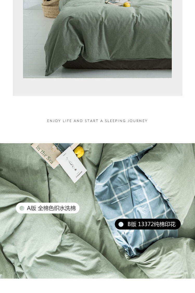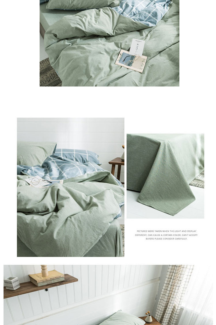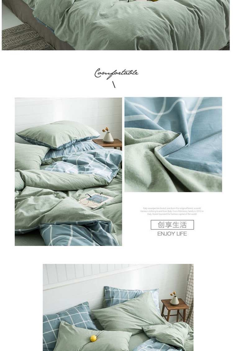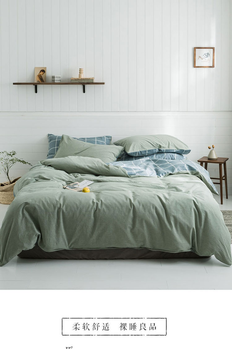 商品名称:梦家居 2019新款北欧全棉色织水洗棉拼色四件套 浅绿大格