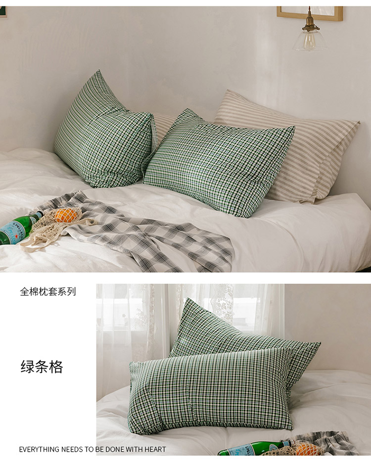 艾沁 2020新款13372全棉枕套48*74cm 绿条格