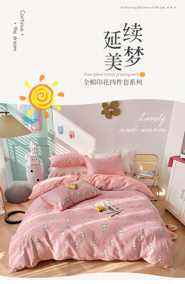 澳萝拉 2021新款印花全棉四件套 软萌白兔