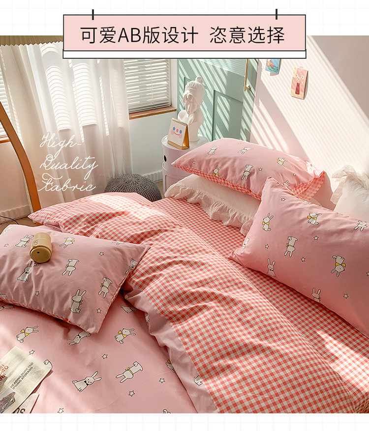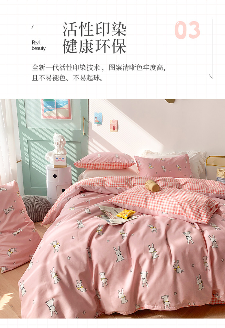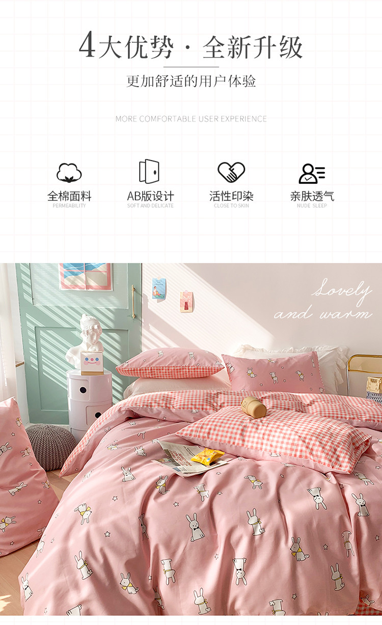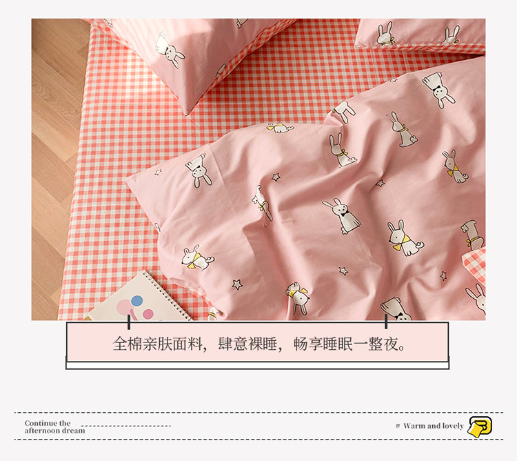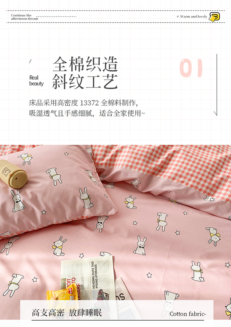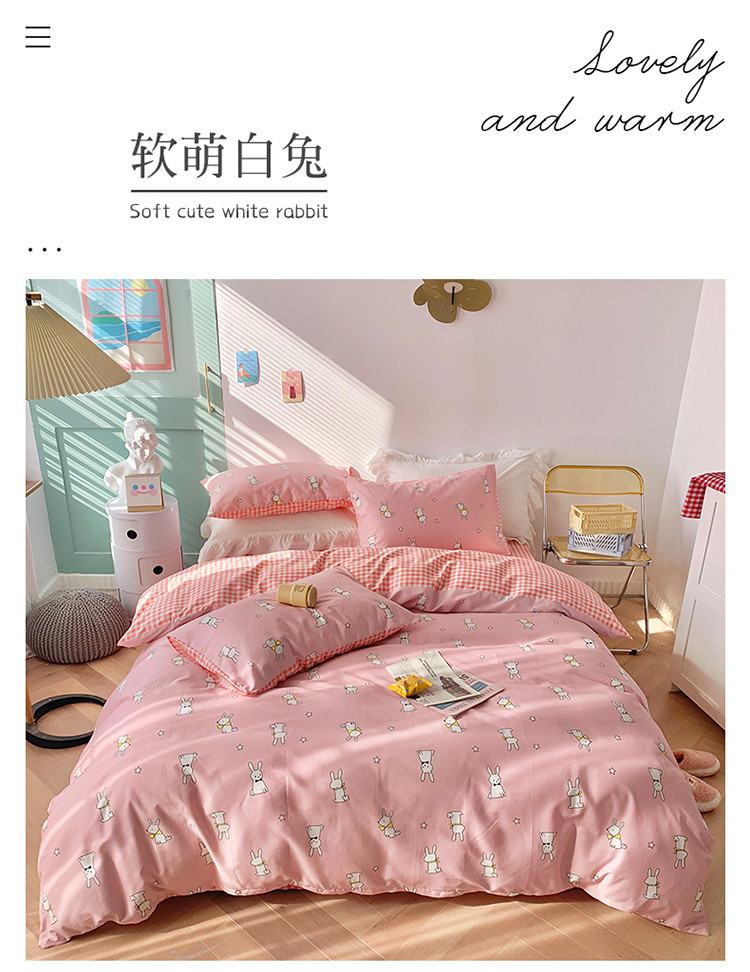 商品名称:澳萝拉 2021新款印花全棉四件套 软萌白兔
