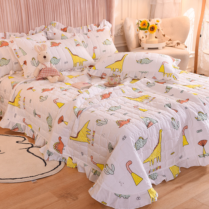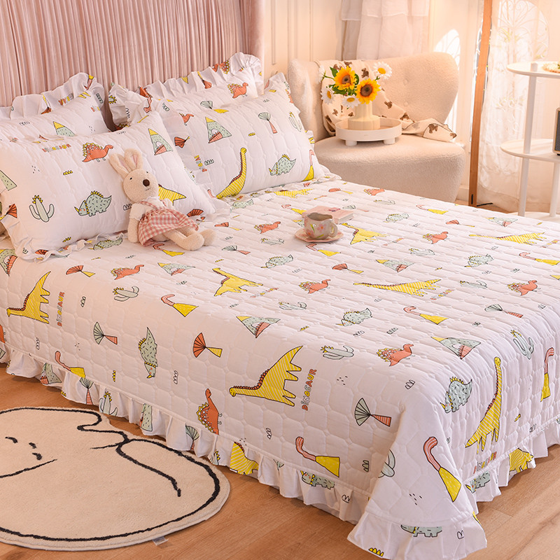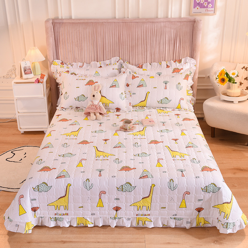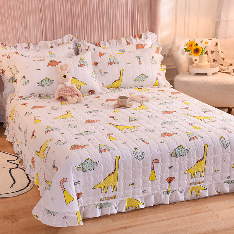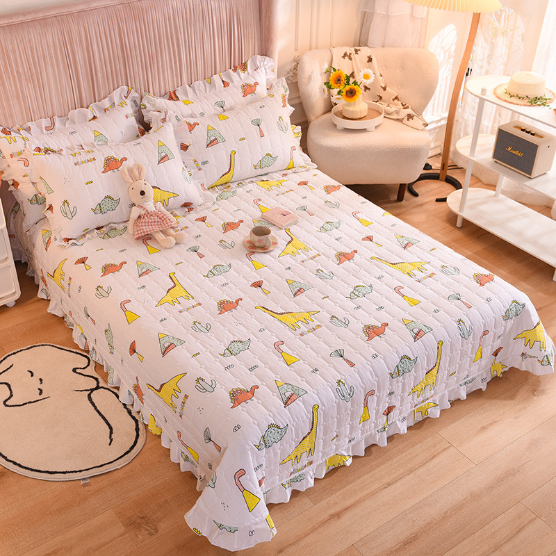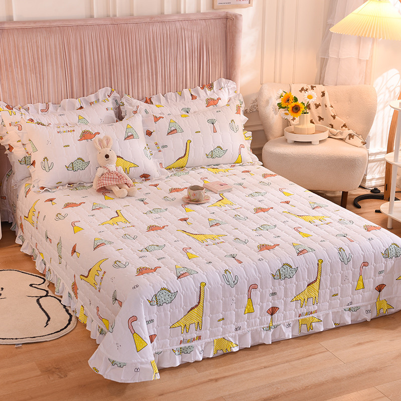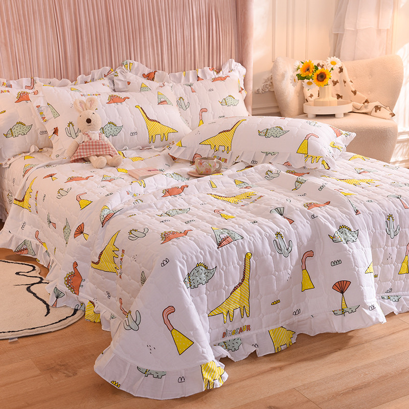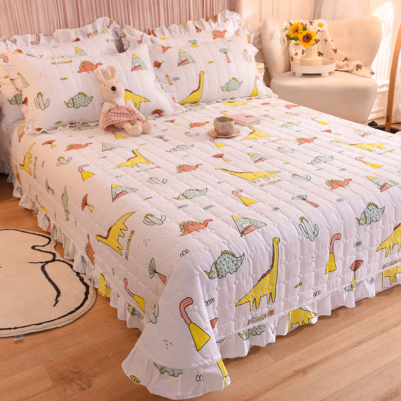 甜之梦家纺 2025新款全棉夹棉防滑抗菌花边款床盖侏罗纪