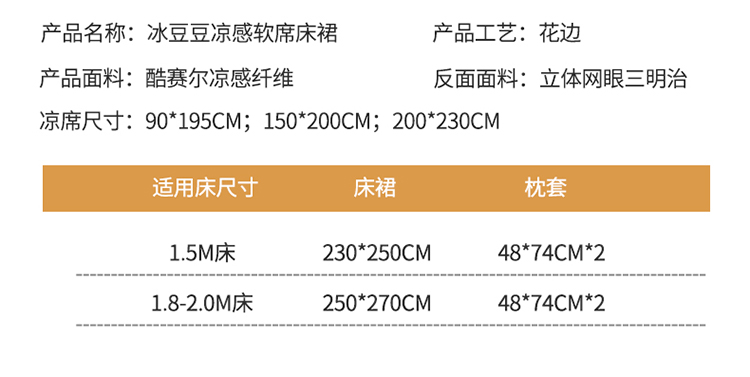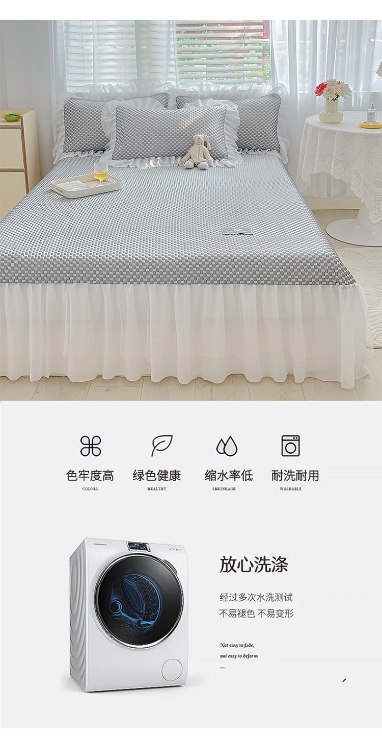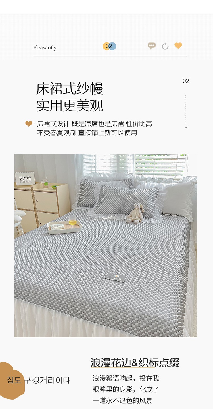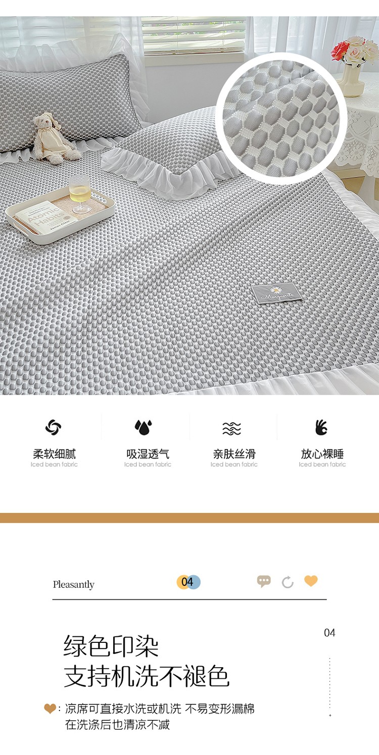 商品名称:吾秀冰豆豆席凉感软席床裙公主冰丝席三件套冰凉感豆豆席凉席公主灰