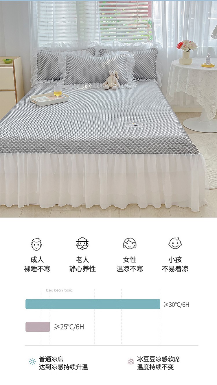 吾秀冰豆豆席凉感软席床裙公主冰丝席三件套冰凉感豆豆席凉席公主灰