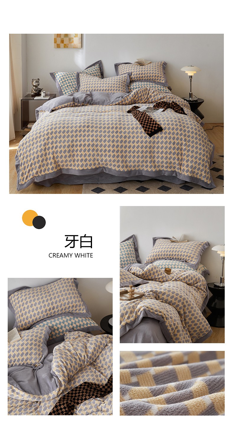 佳梦家纺 2022新款240克高端色织牛奶绒四件套-织梦 织梦(牙白)