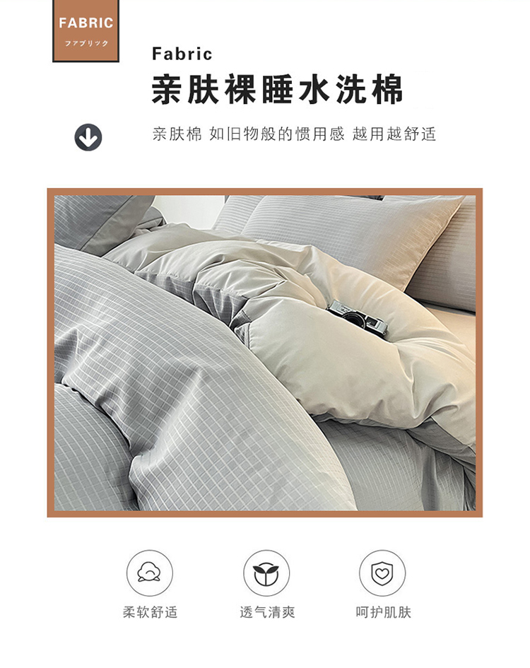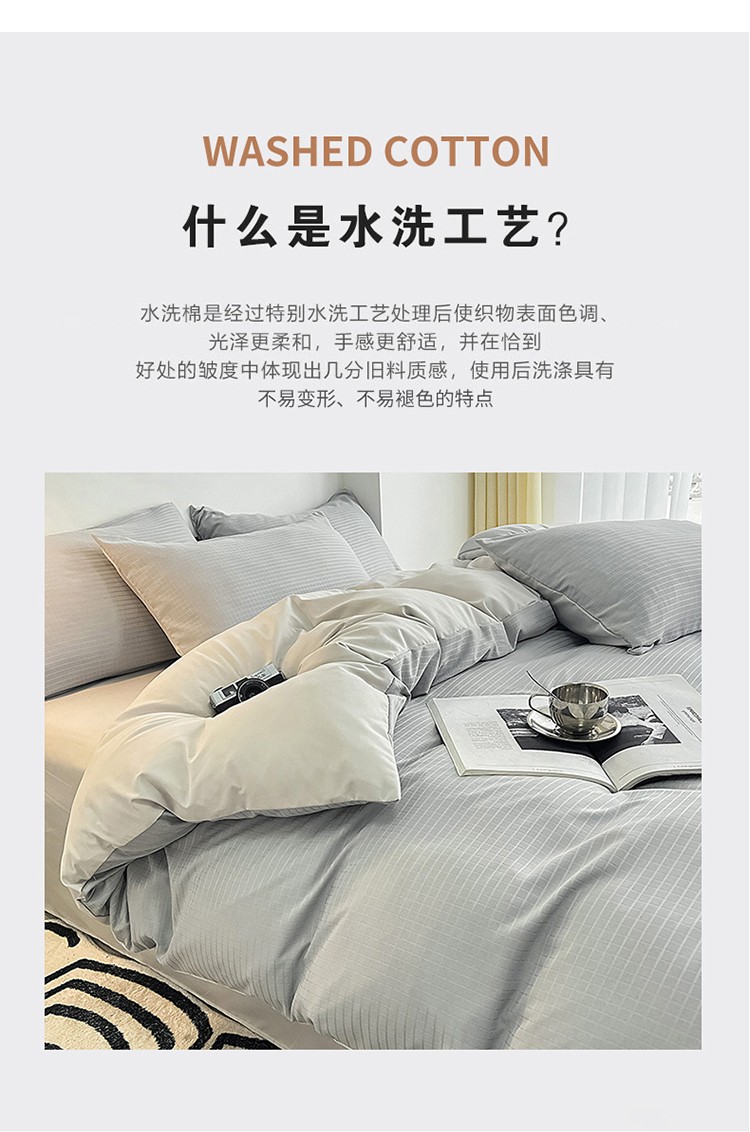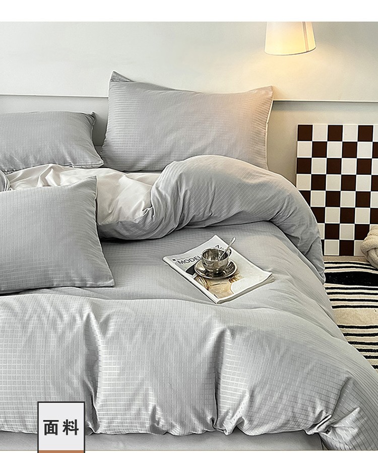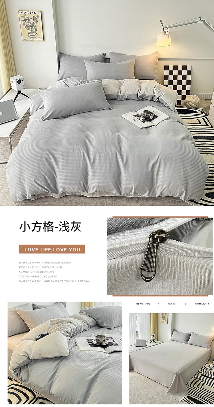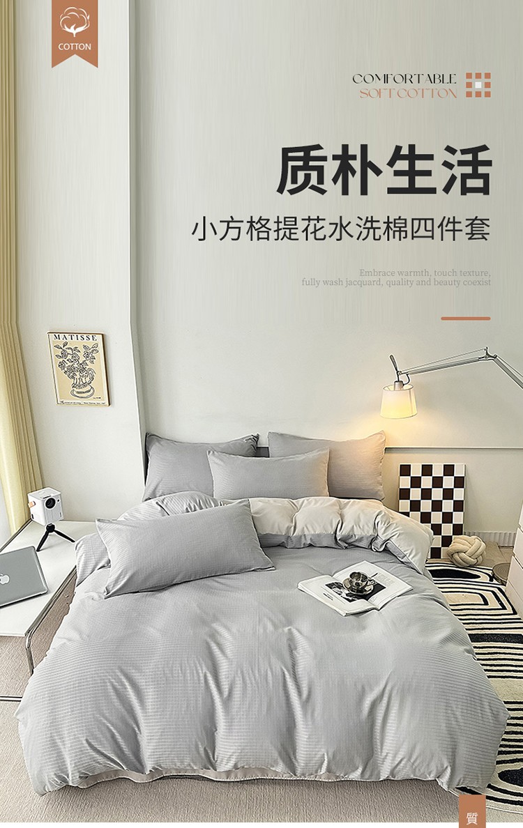 商品名称:N先生 2024新款小方格提花水洗棉四件套 浅灰
