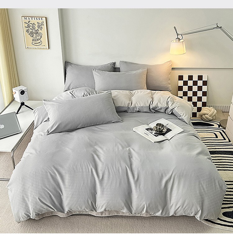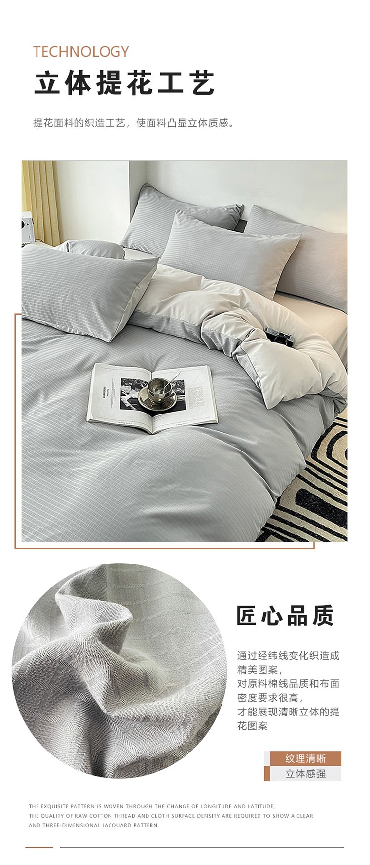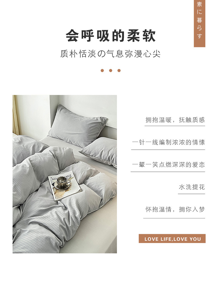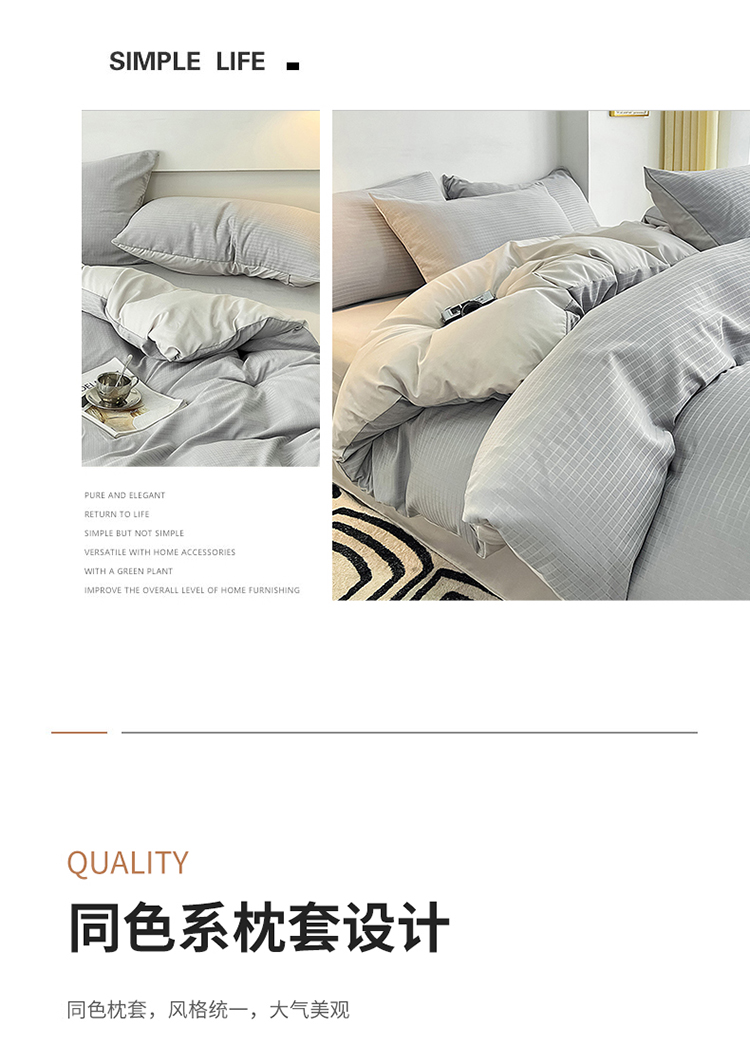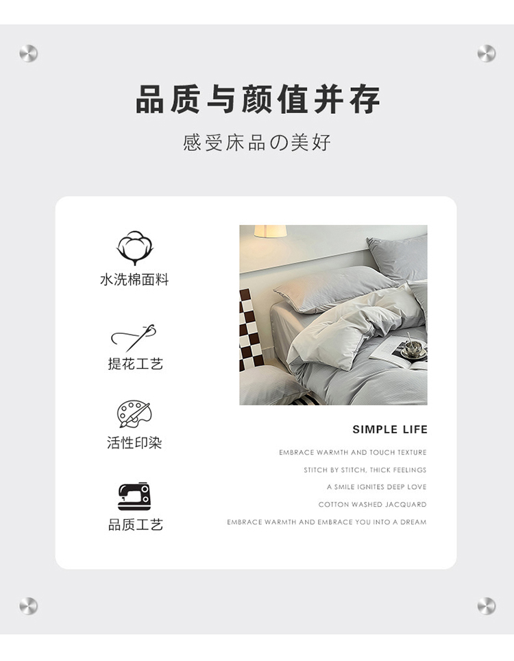 商品名称:N先生 2024新款小方格提花水洗棉四件套 浅灰