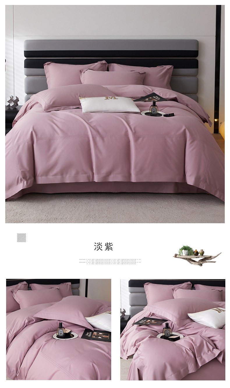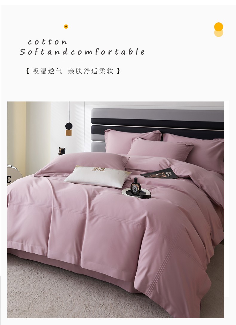(总)安妮家居 2025新款100S长绒棉贡缎纯色四件套,水漾蓝,胧月灰,奶白色,蔷薇粉,柔缦紫,砂砾咖