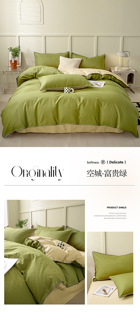 当前位置: 91家纺网 > 商品网购 > 床品套件 > 四件套 > 提花四件套 > 涵宸 2023新款全棉提花四件套 空城-富贵绿