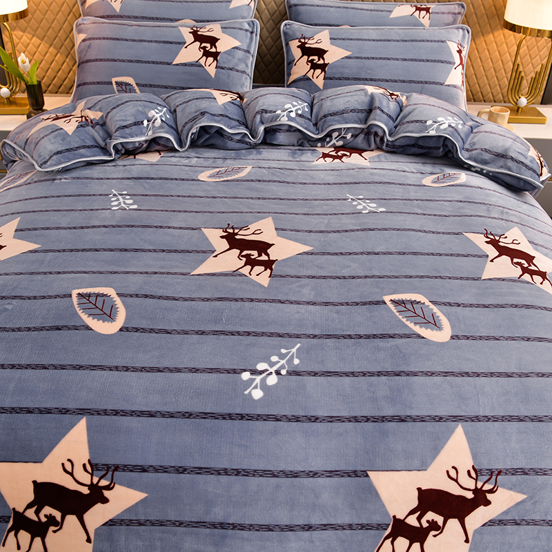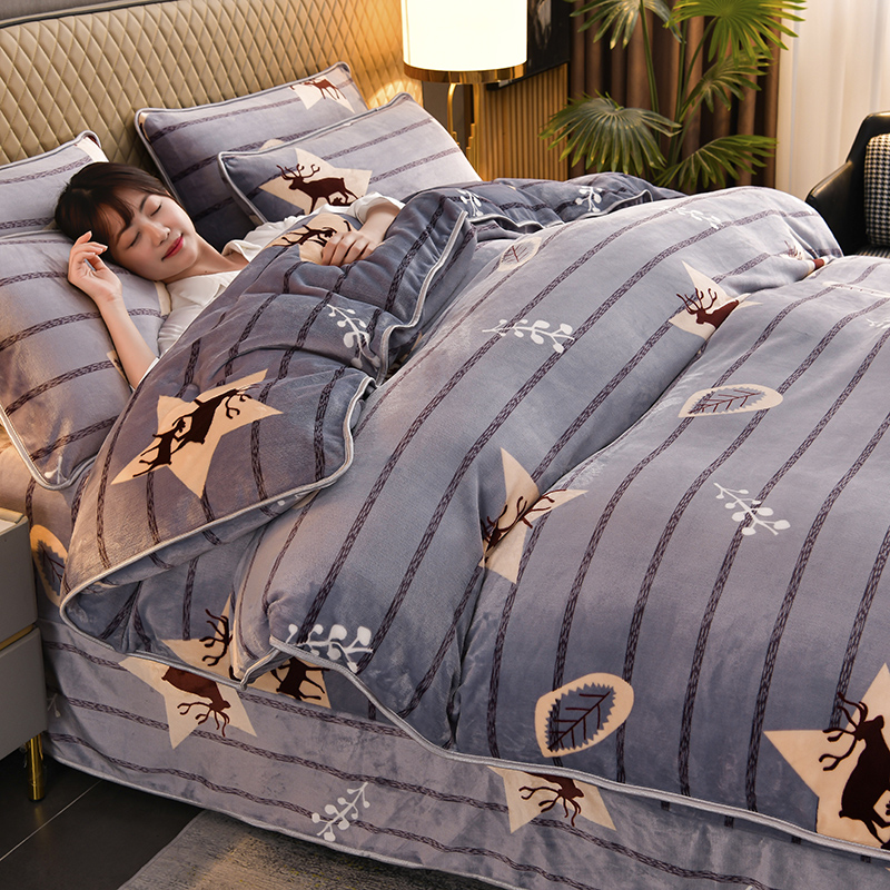 2023直播爆款印花牛奶绒四件套220克法莱绒印花吊边款四件套简约格调,简约格调