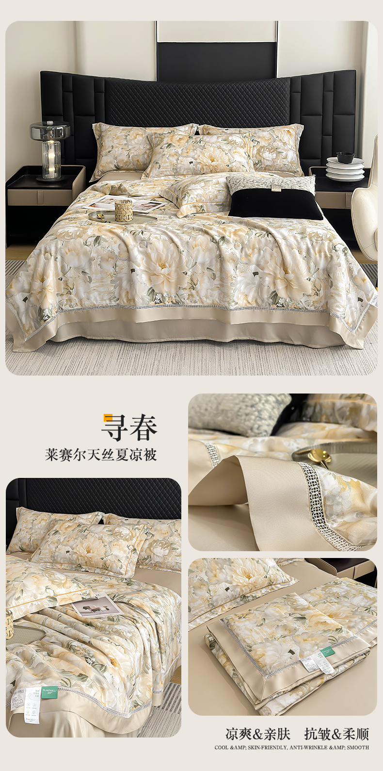 商品名称:娇逸家居 2025新款50支印花莱赛尔天丝夏被镂空款花边夏凉被 寻春