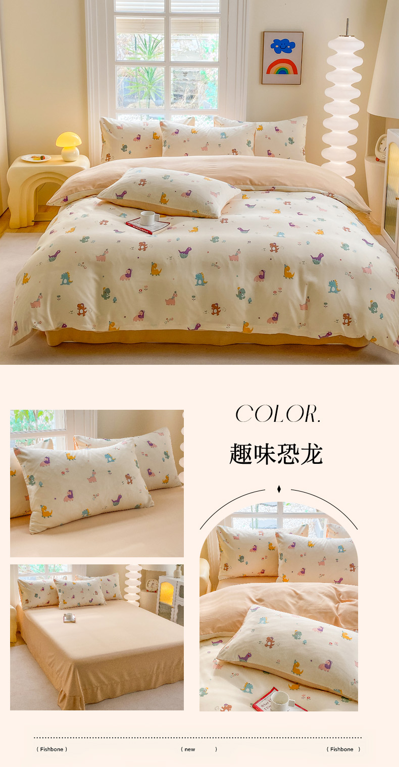商品名称:富缦庭2025新款A类针织双层纱四件套趣味恐龙