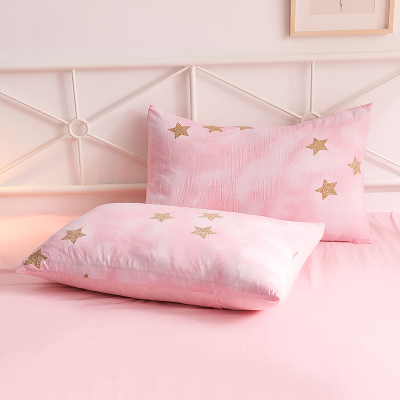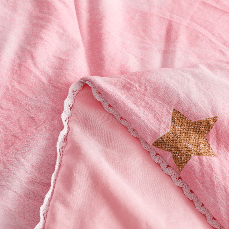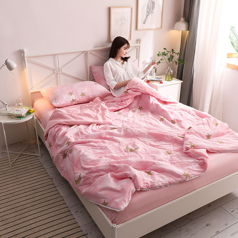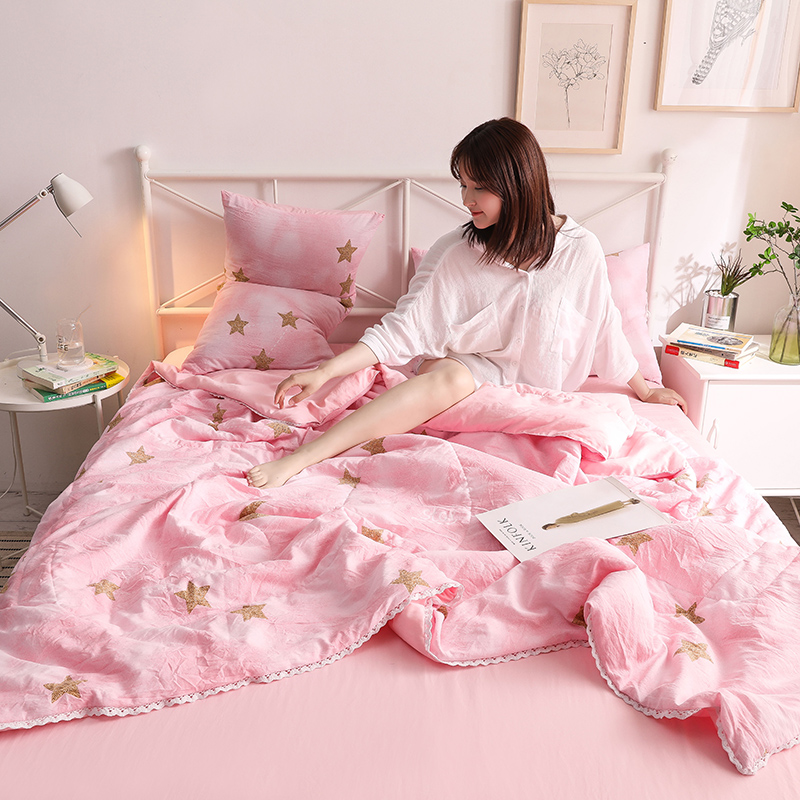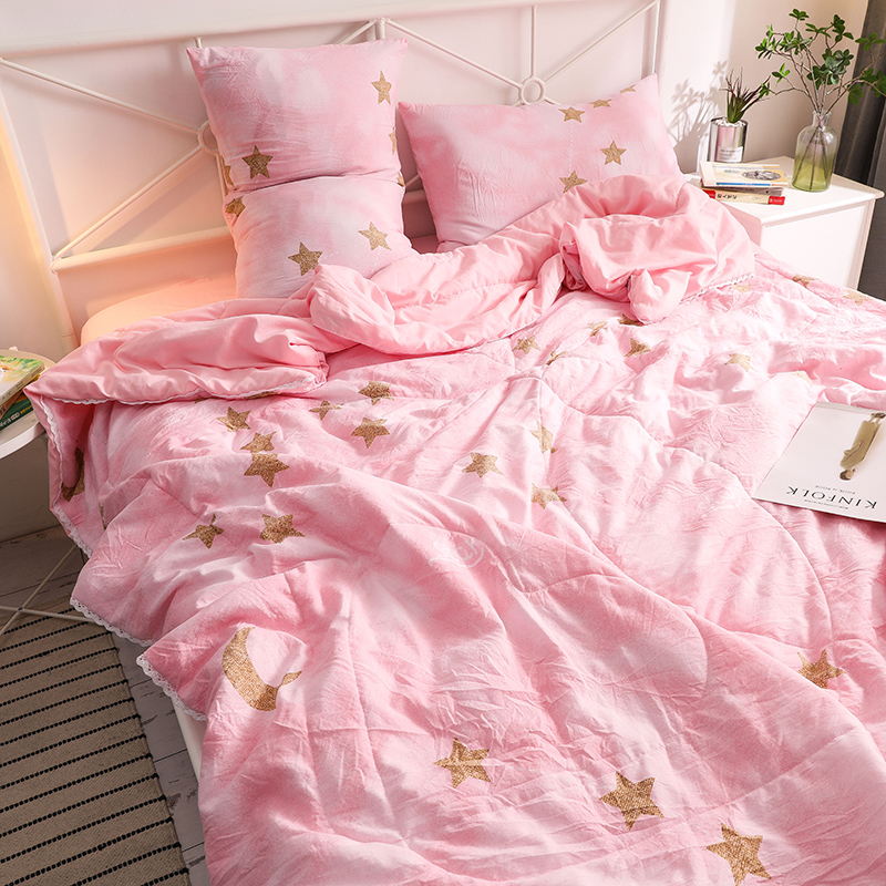 鑫贝阳 2025新款亲肤水洗棉小花边印花夏被 星空粉