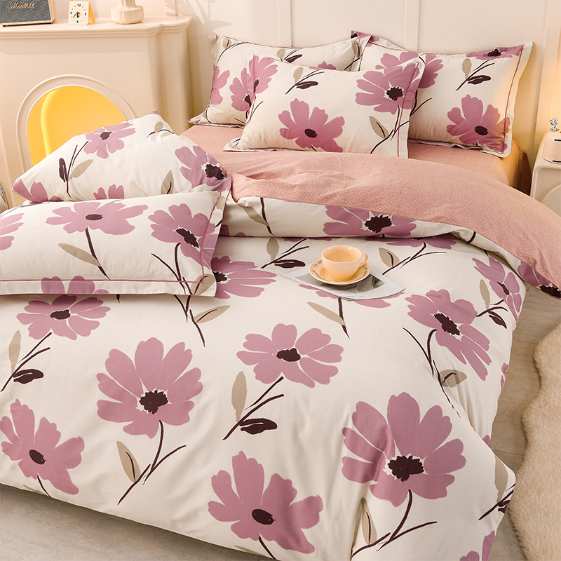 润淳 2025全棉正宗13376四件套精梳棉印花纯棉三件套13372全棉四件套 花开时光粉