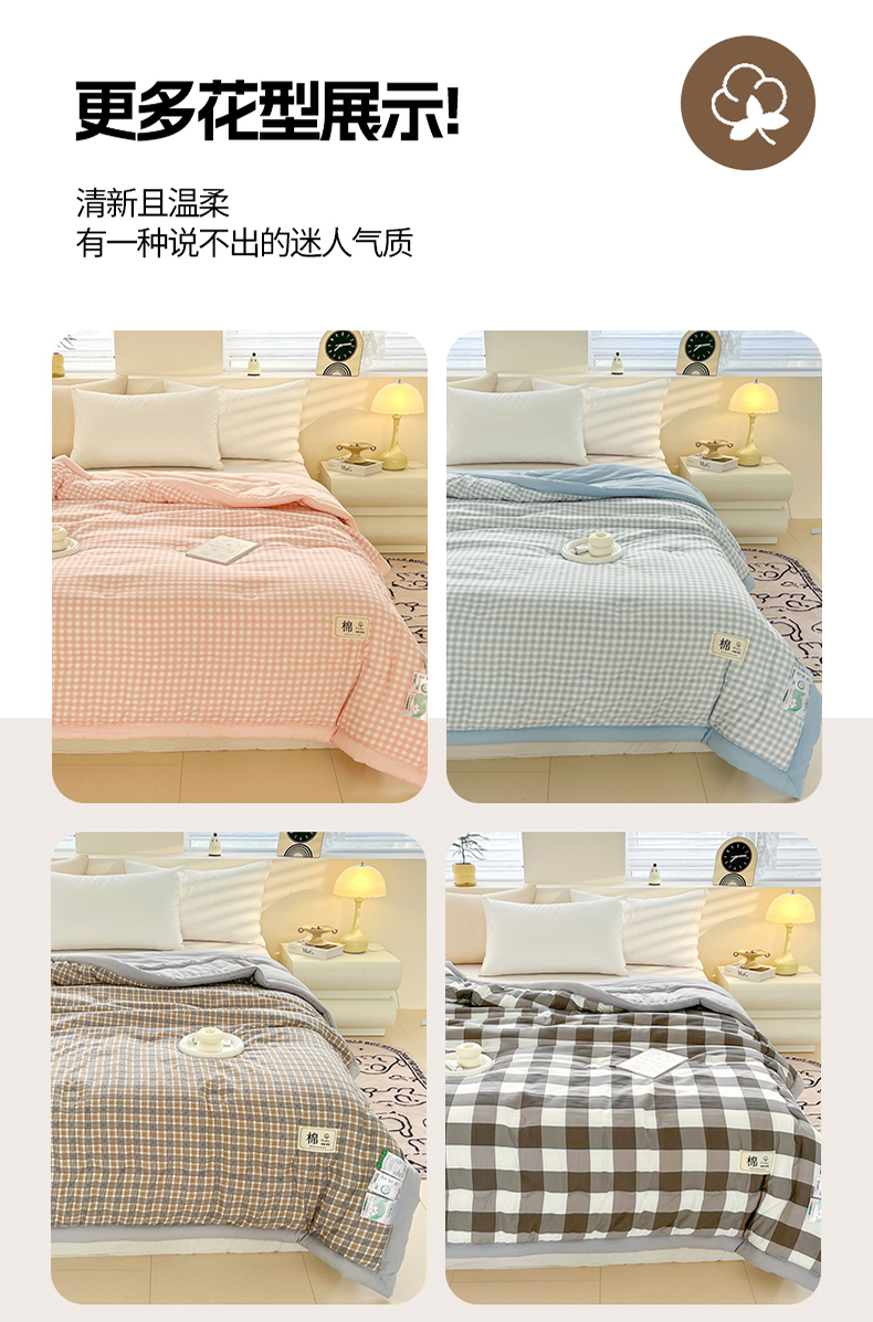 (总)爱宝被业 2025新款水洗针织棉无染被夏被被芯直播爆款,白色,粉色,绿色,浅灰