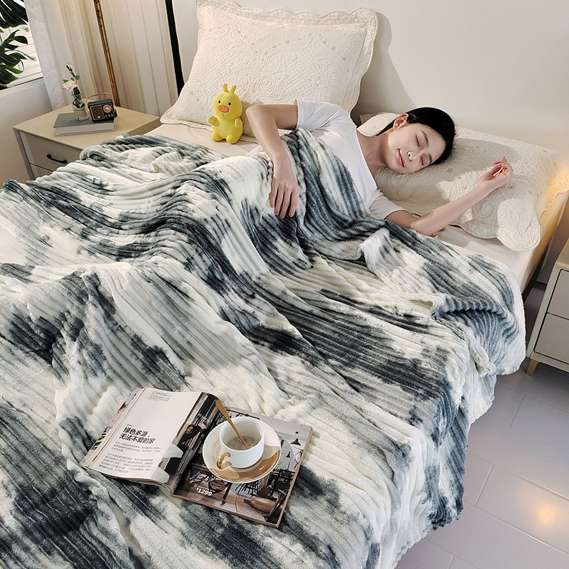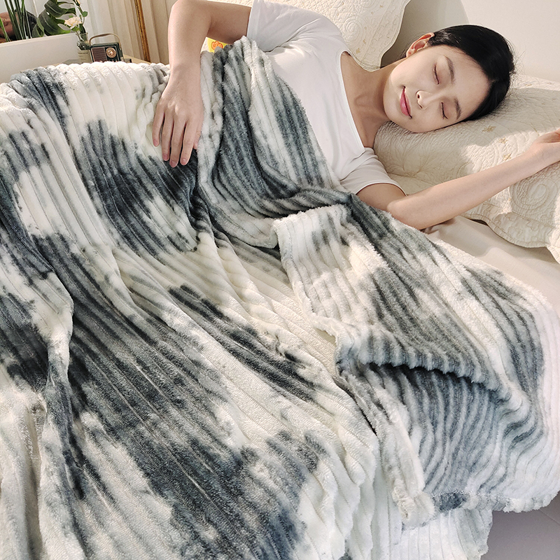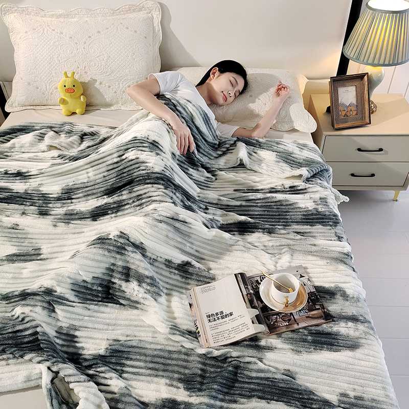 商品名称:巴木赫2025新款200g水墨印染抽条毛毯毯子 水墨画