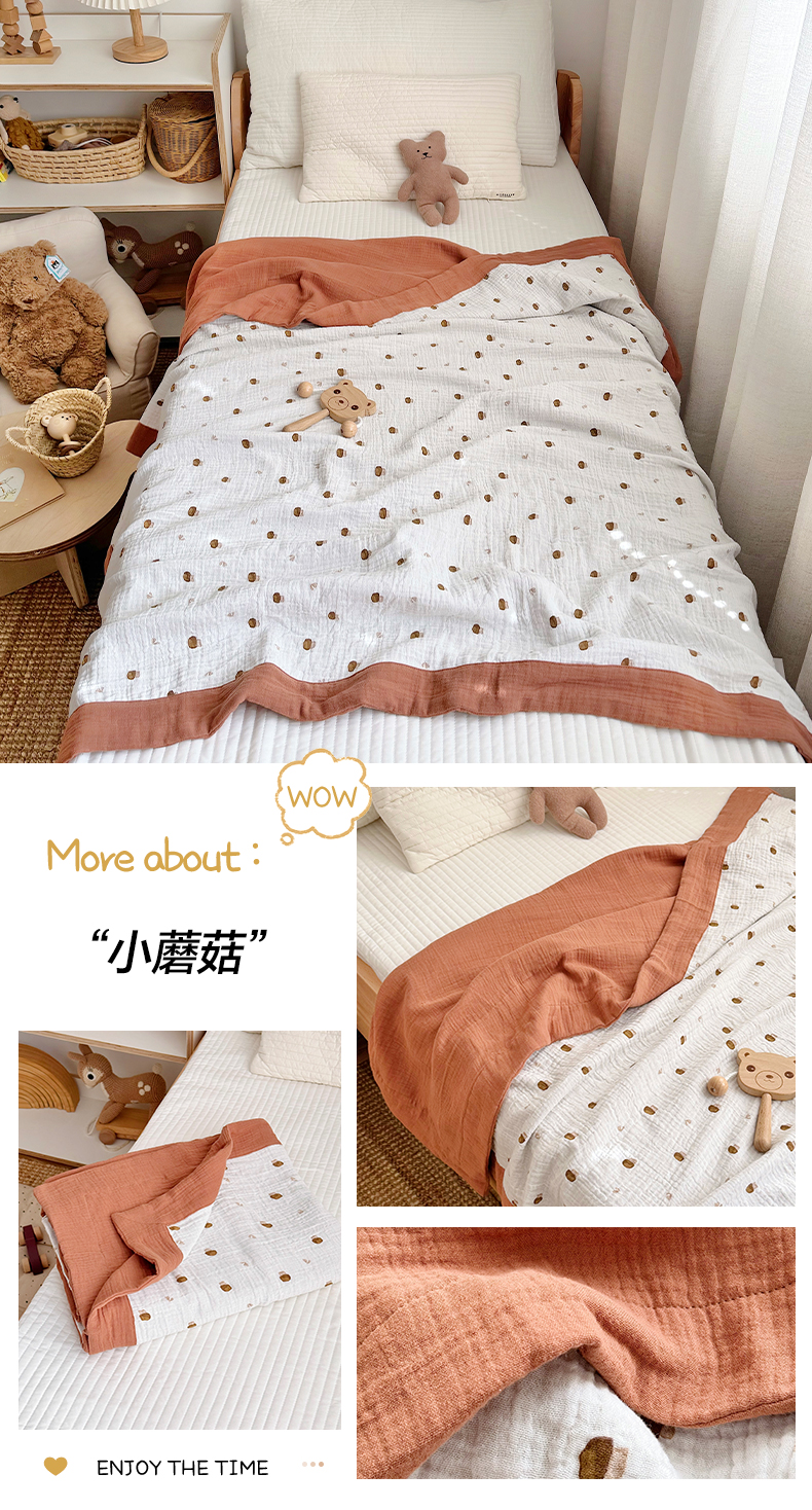 商品名称:BOSS 2025新款全棉纯棉皱皱纱儿童盖毯夏被 幼儿园夏被夏凉被空调被 小蘑菇