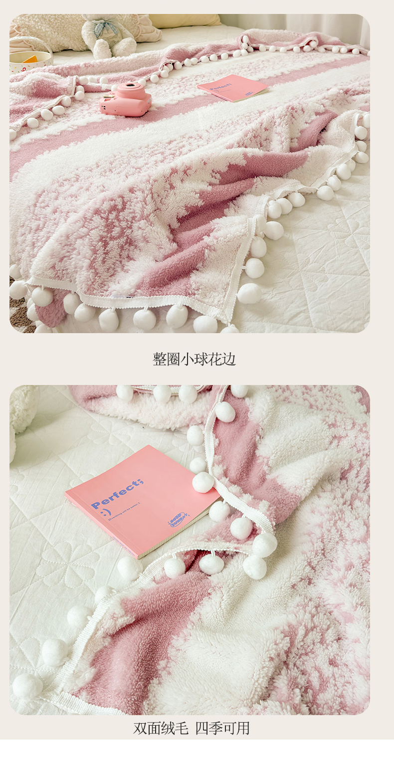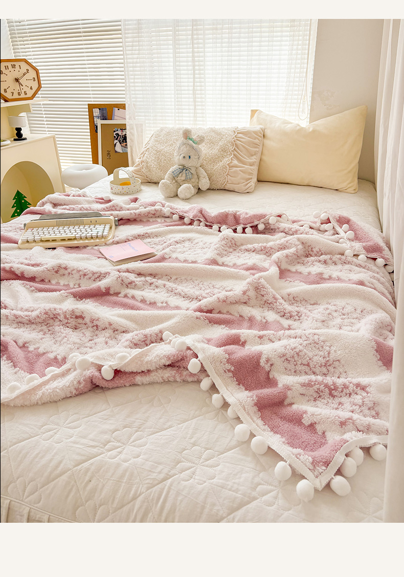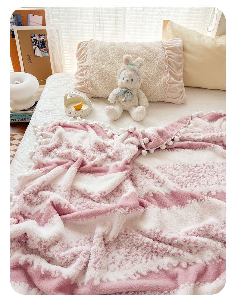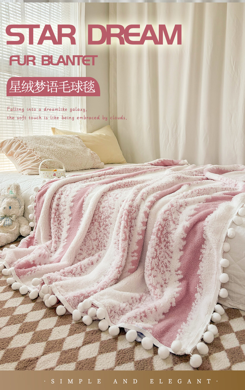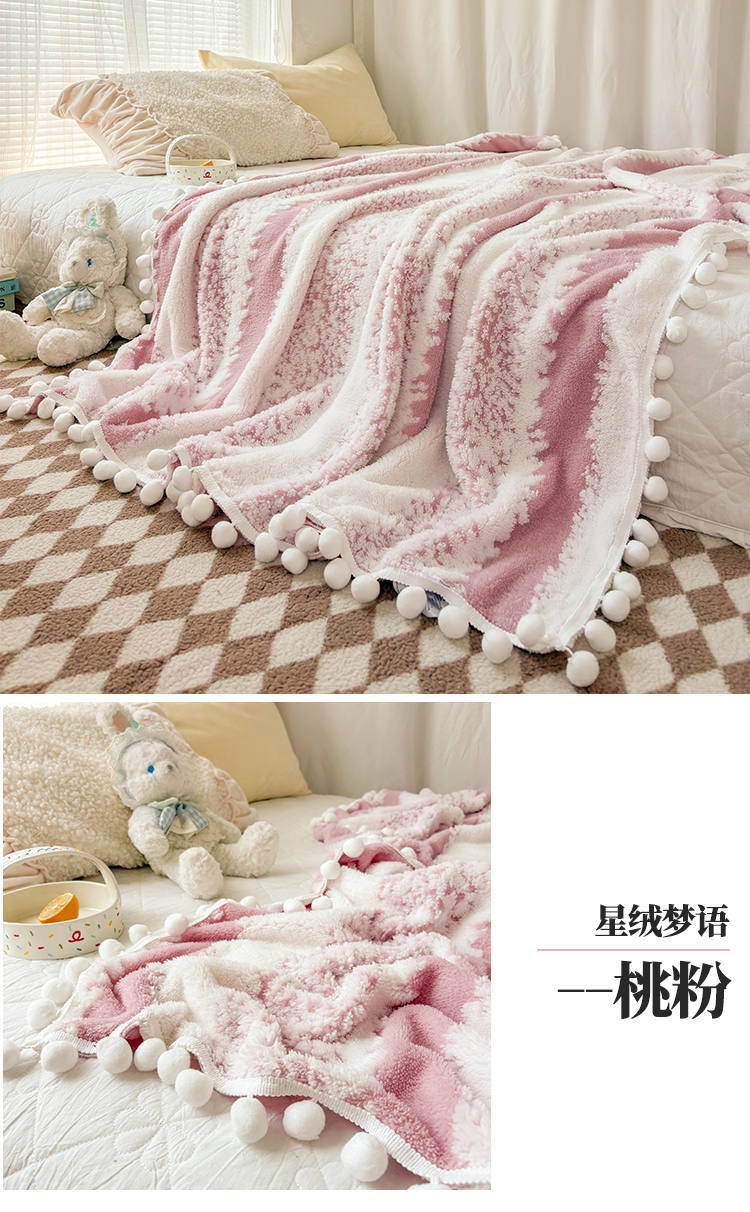 潮邦创意家居 【标准250G】阳离子双色提花星绒梦语小球毯可供跨境电商可压缩 星绒梦语桃粉