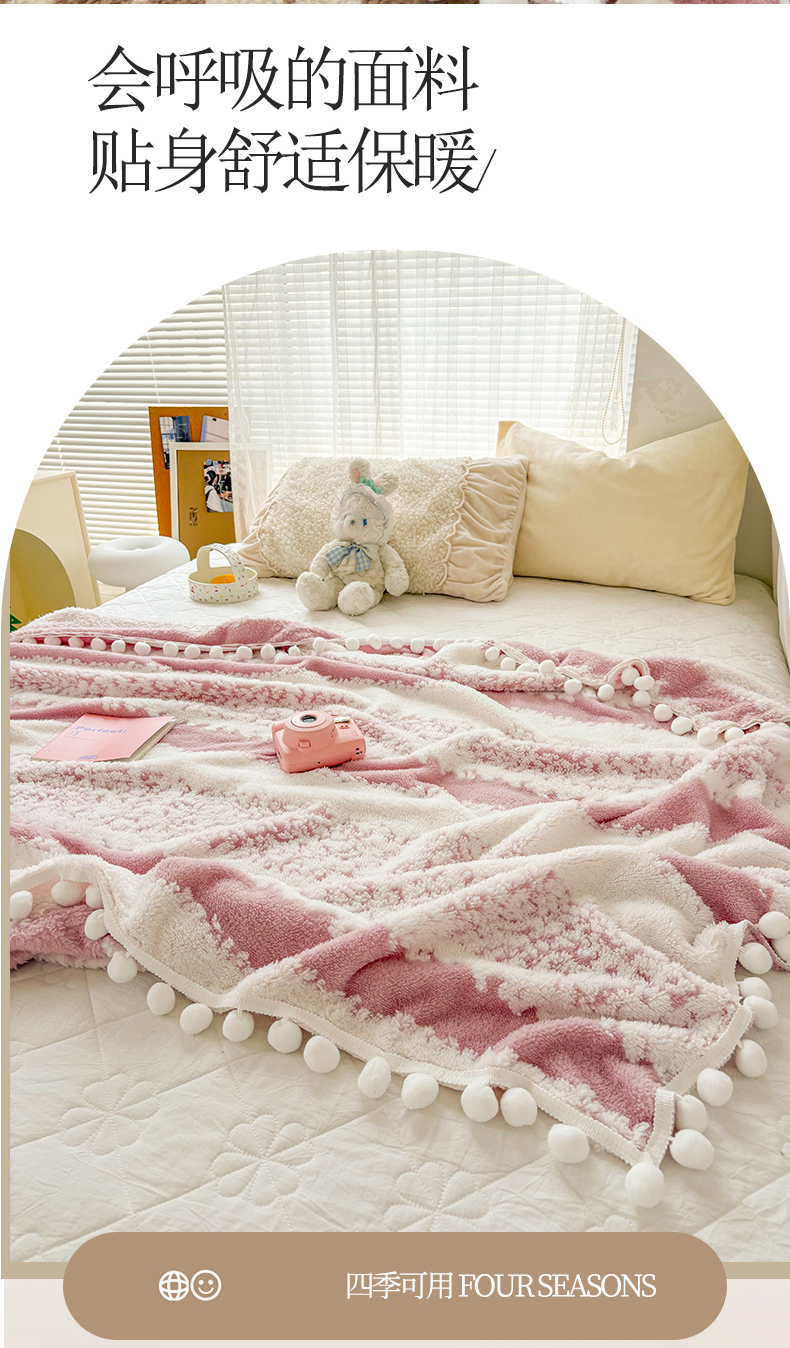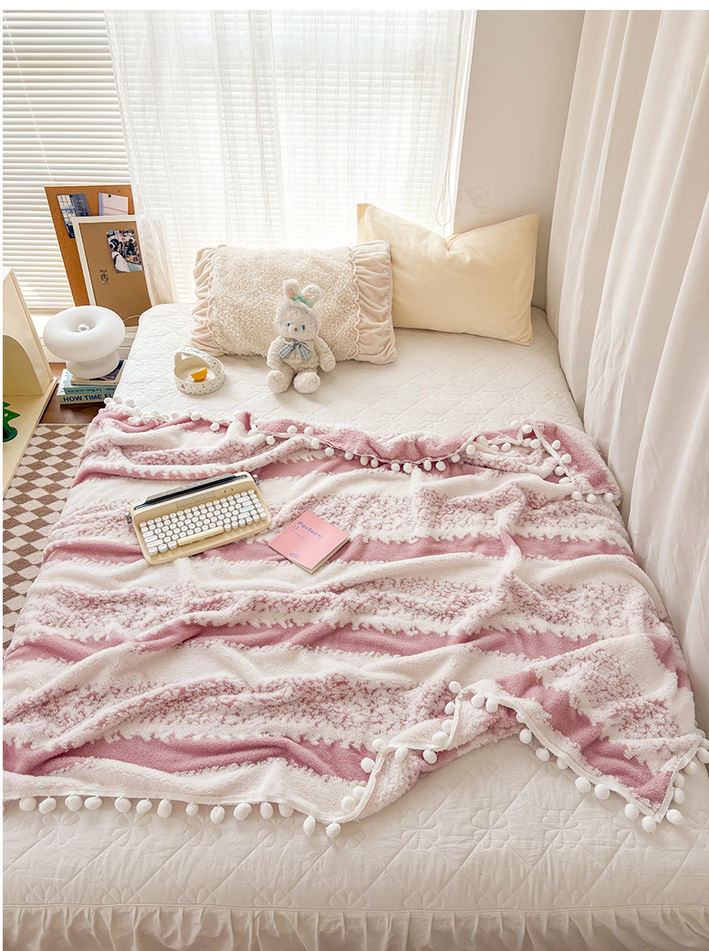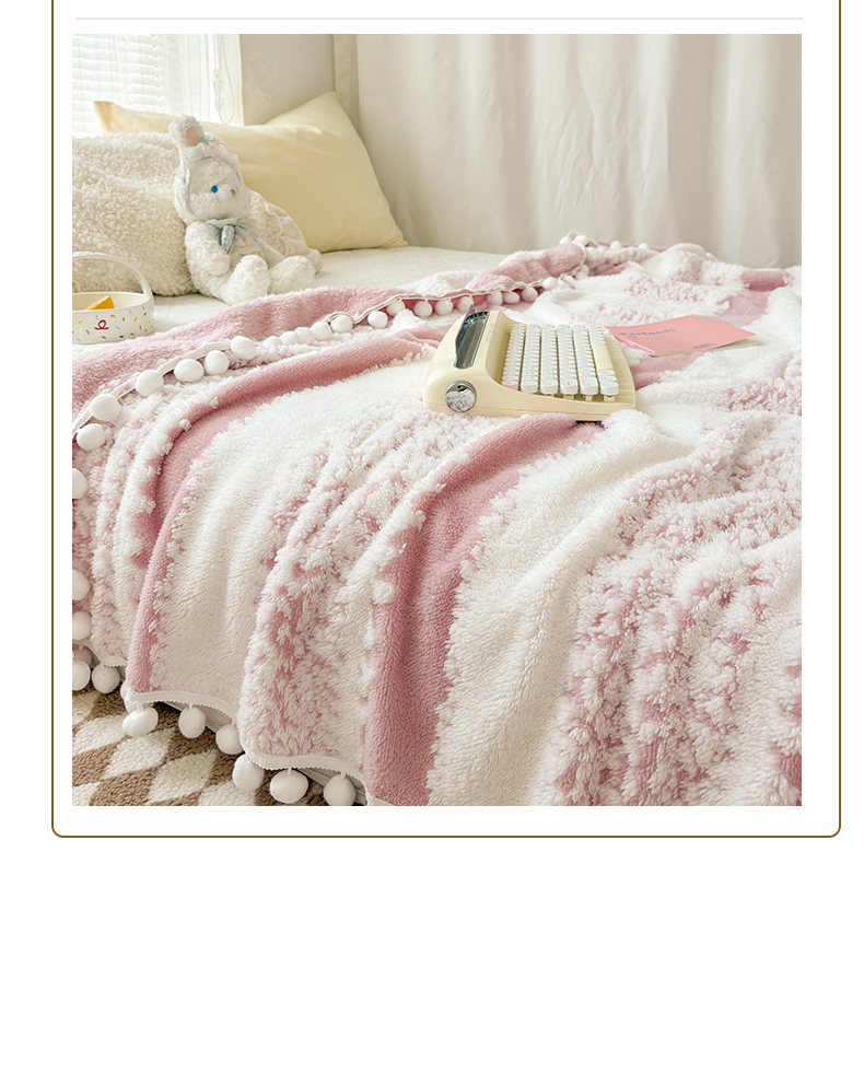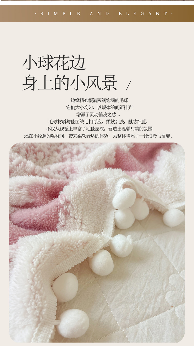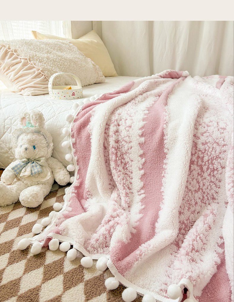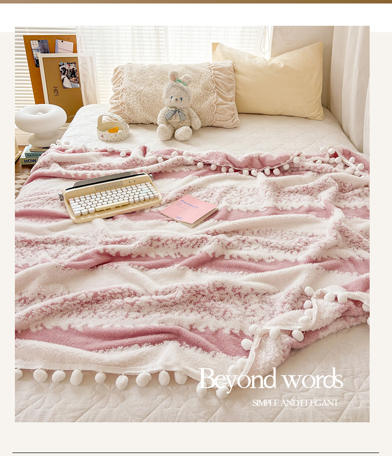 潮邦创意家居 【标准250G】阳离子双色提花星绒梦语小球毯可供跨境电商可压缩 星绒梦语桃粉
