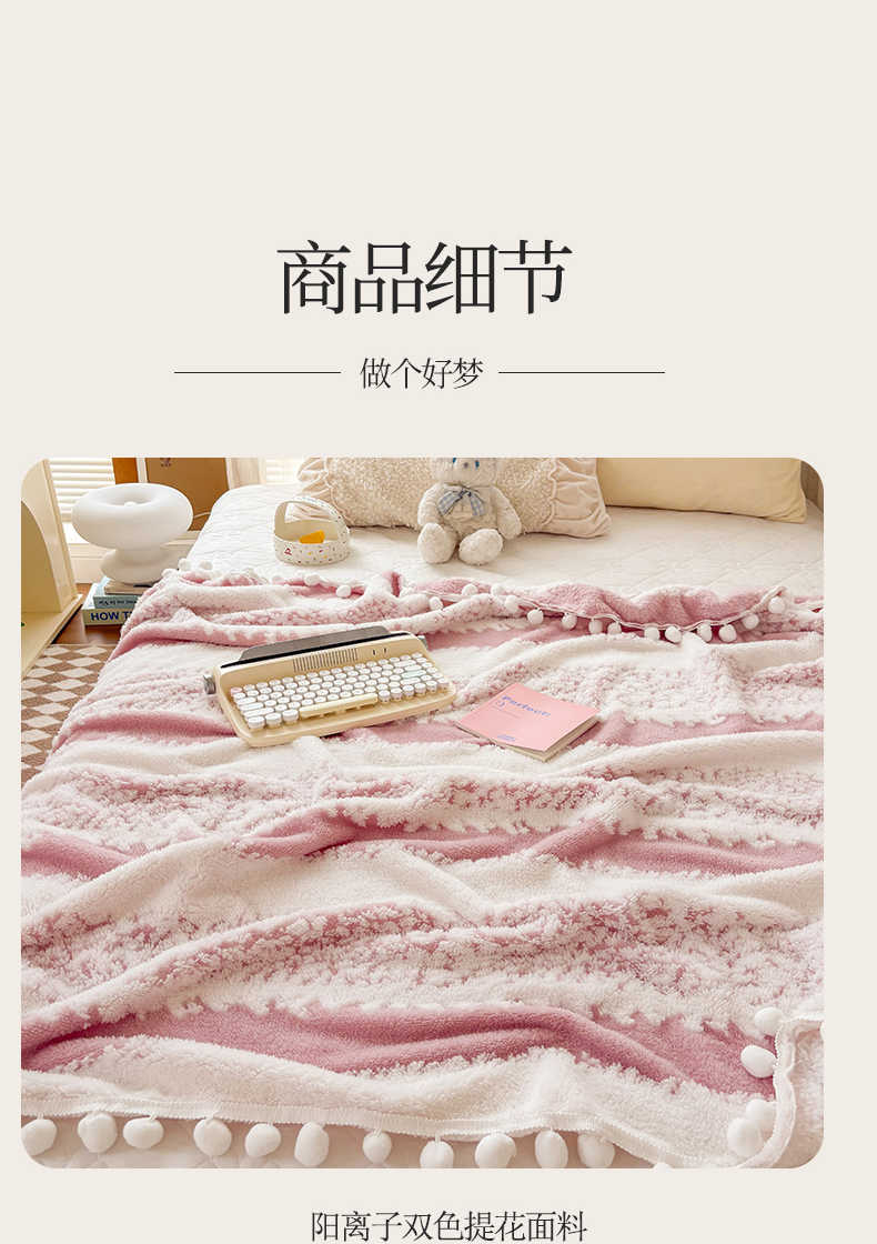 商品名称:潮邦创意家居 【标准250G】阳离子双色提花星绒梦语小球毯可供跨境电商可压缩 星绒梦语桃粉