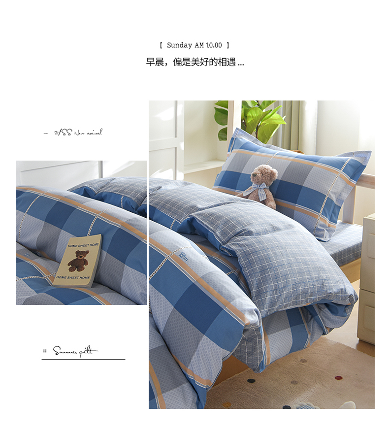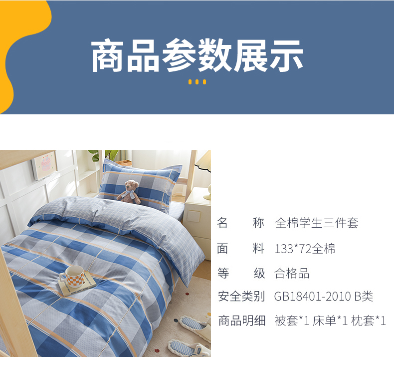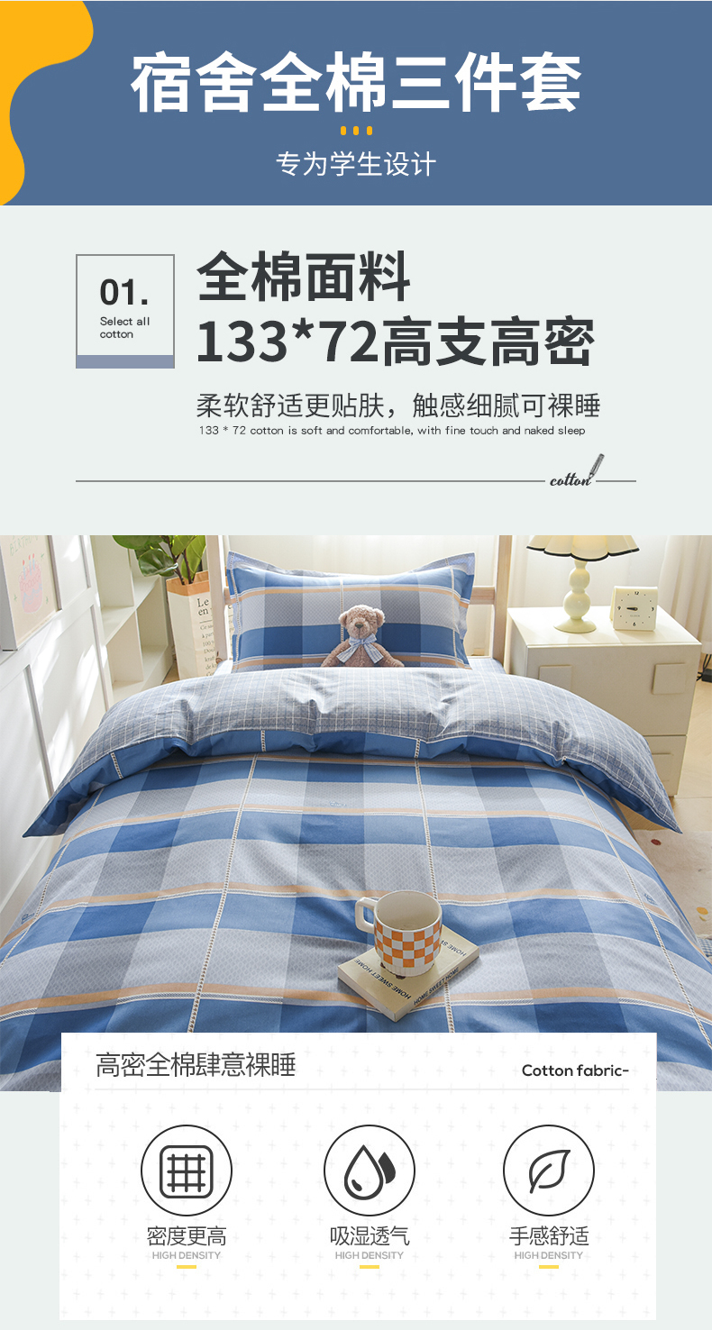 商品名称:鑫宇2025新款13372全棉学生宿舍上下铺三件套床单款床笠款可定制 夏曲-蓝