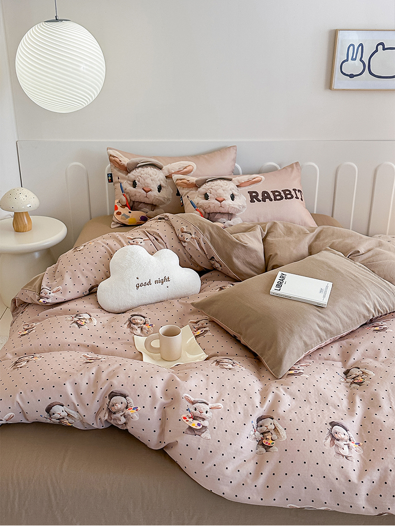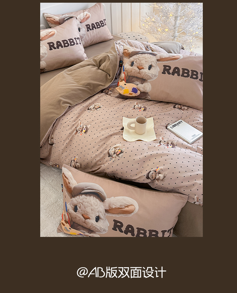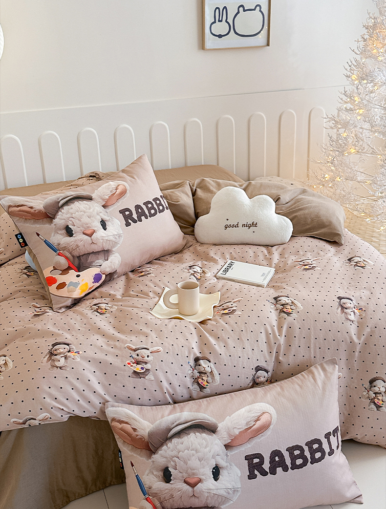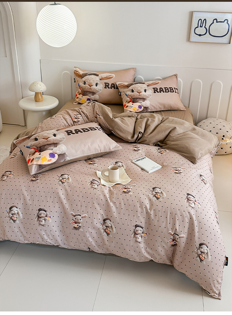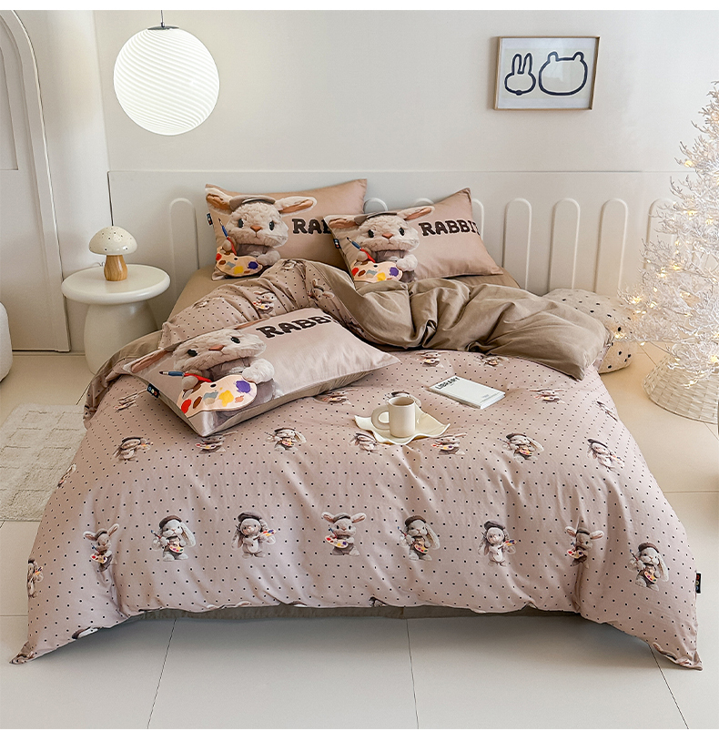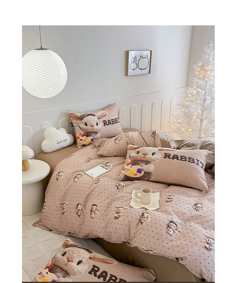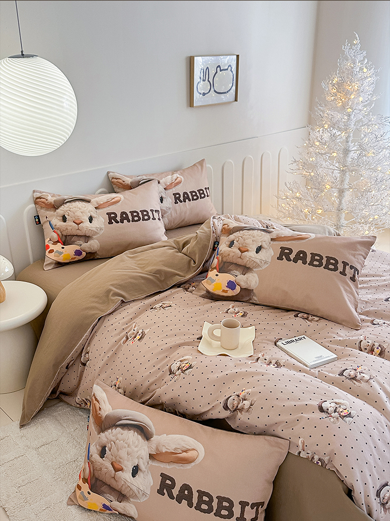 商品名称:RYB红黄兰 2025新款ins卡通5D立体数码全棉纯棉有氧双层纱四件套系列 巧克力兔兔