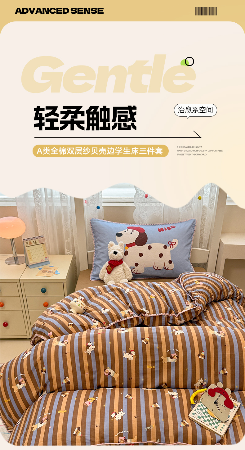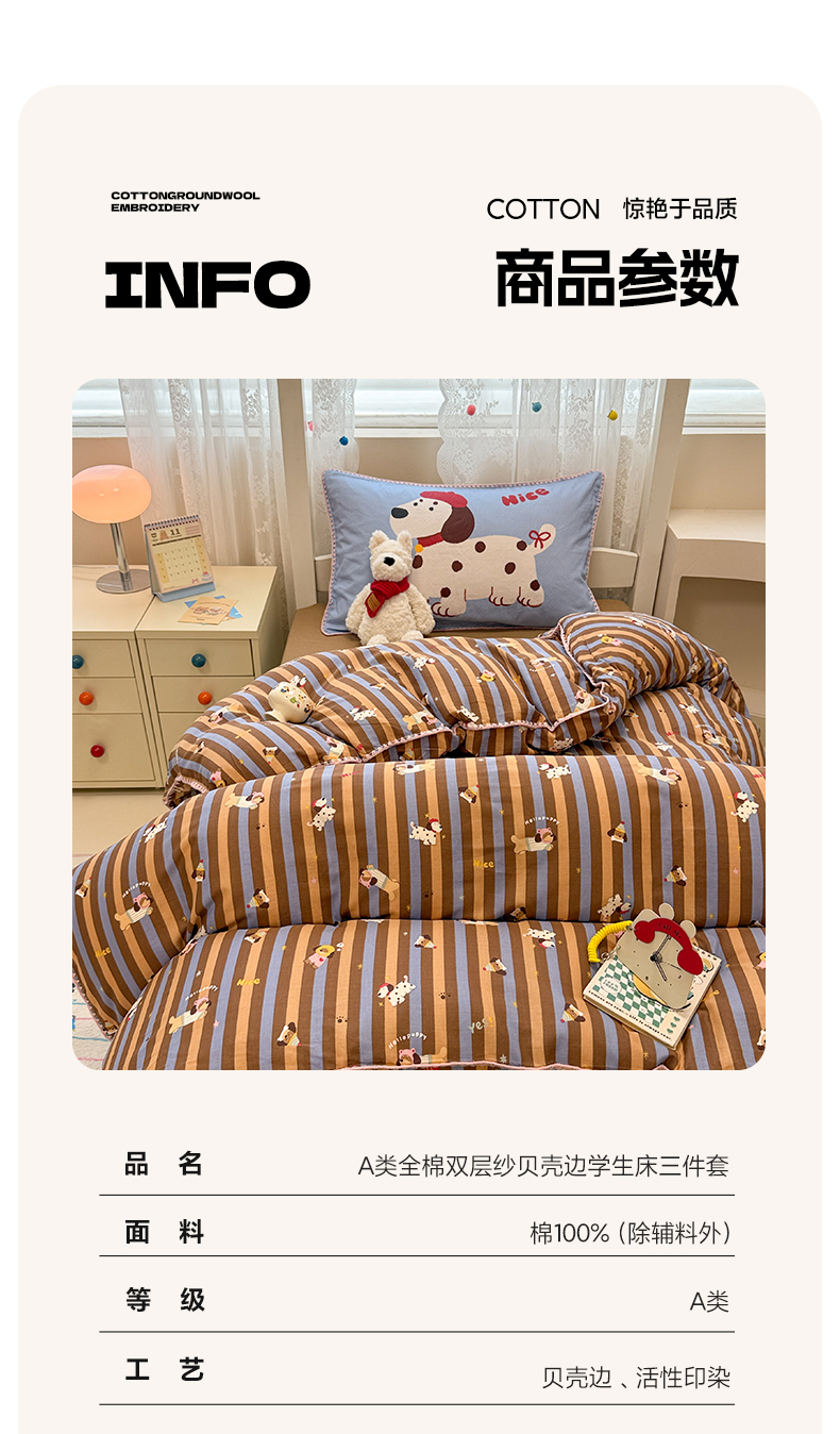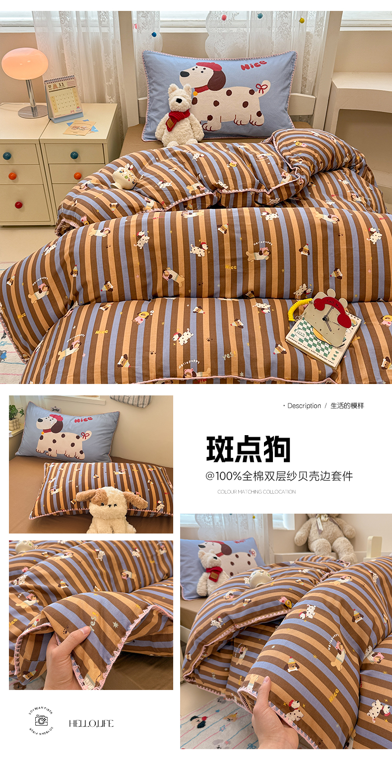 当前位置: 91家纺网 > 商品网购 > 床品套件 > 三件套 > 沐辰 2025新款全棉双层纱A类贝壳边学生床三件套 斑点狗