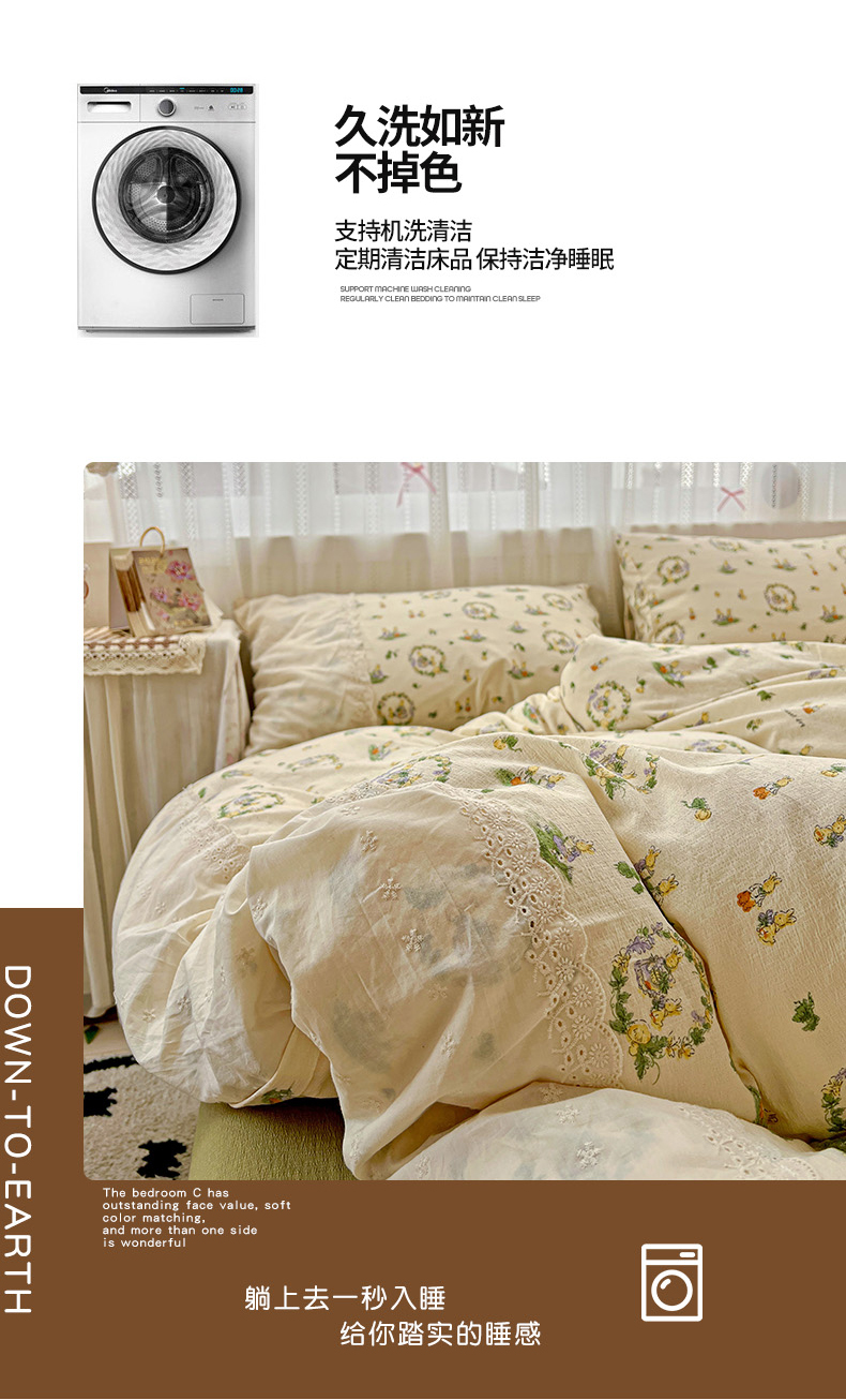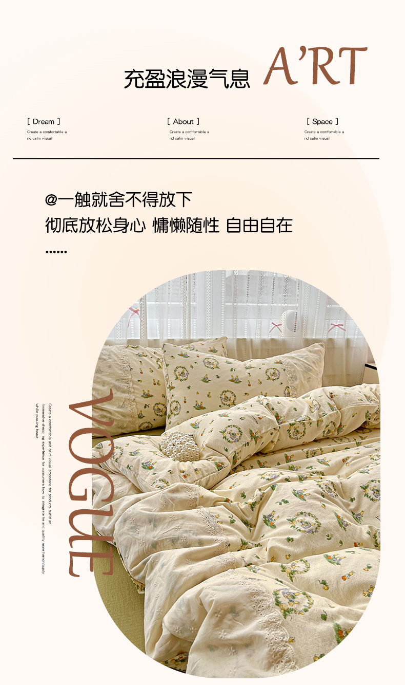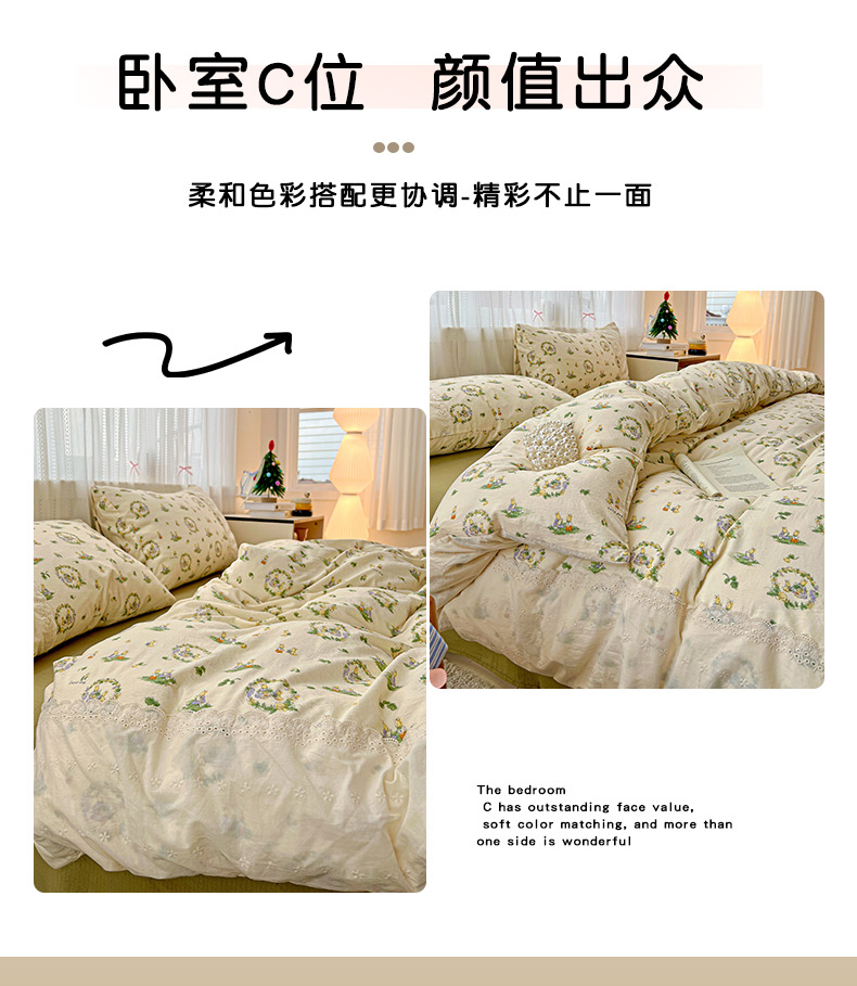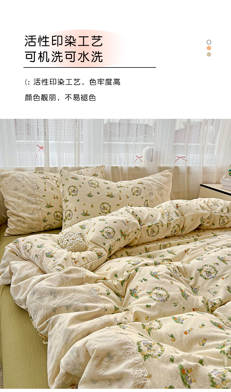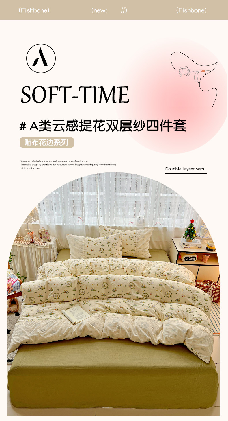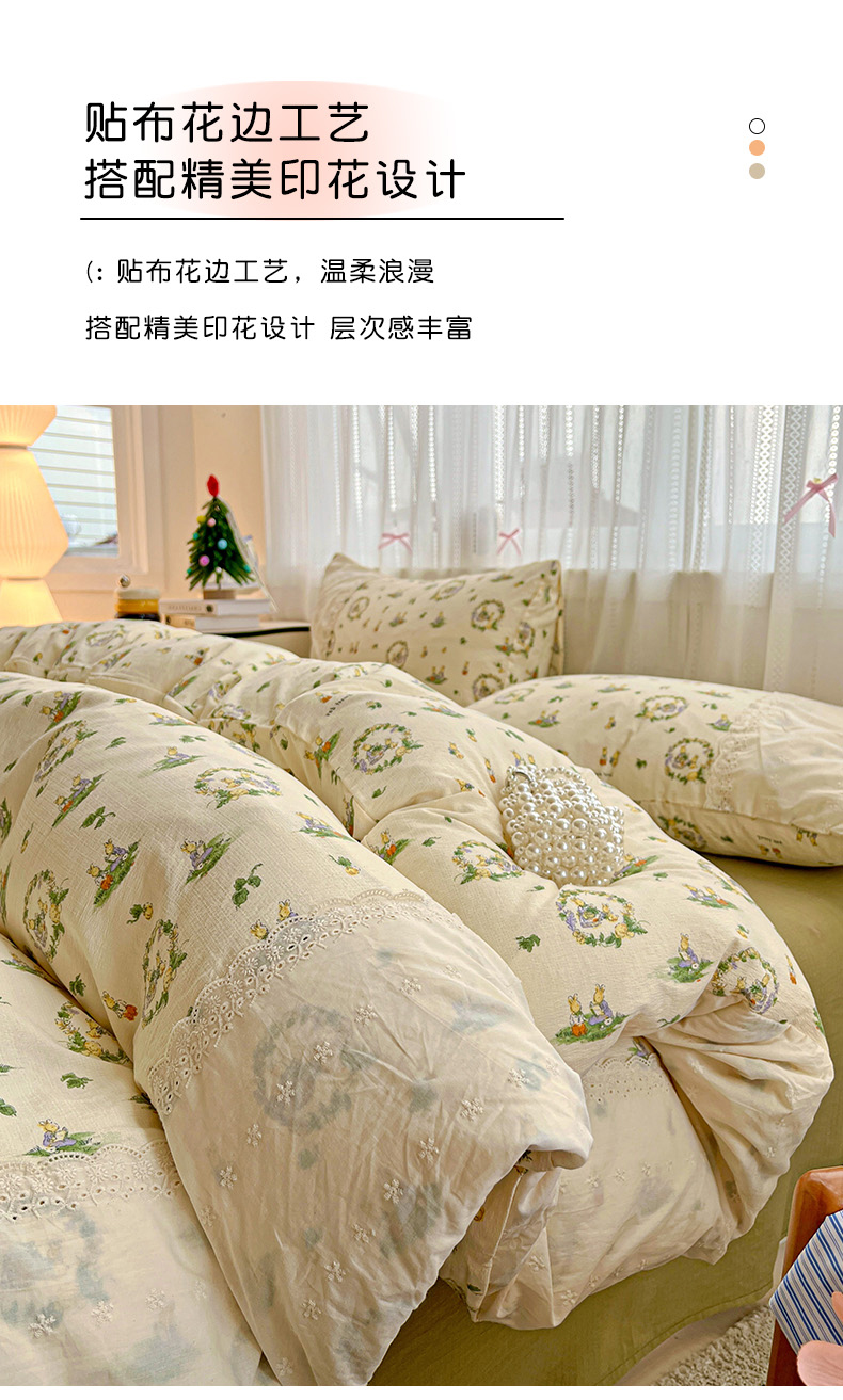 当前位置: 91家纺网 > 商品网购 > 床品套件 > 四件套 > 双层纱四件套 > 喜颜 2025新款云感木棉双层纱贴布花边爆款四件套 多多兔-(贴布花边)