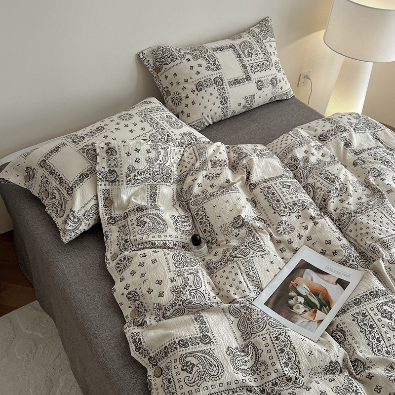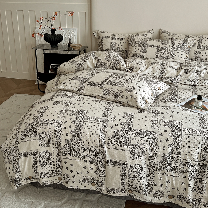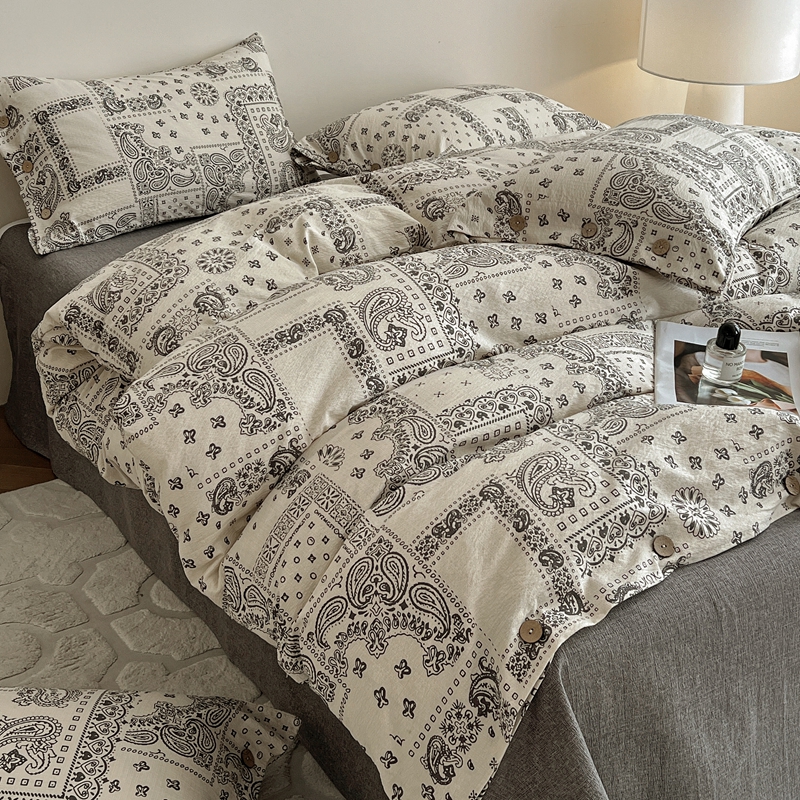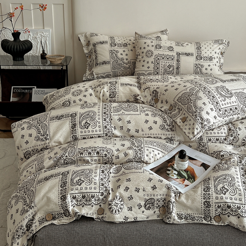 仟网汇 2025新款亚麻纽扣款四件套 伊甸园