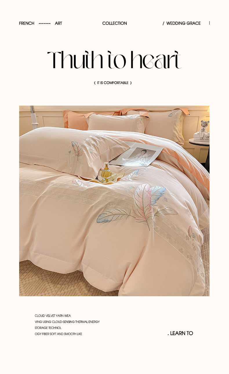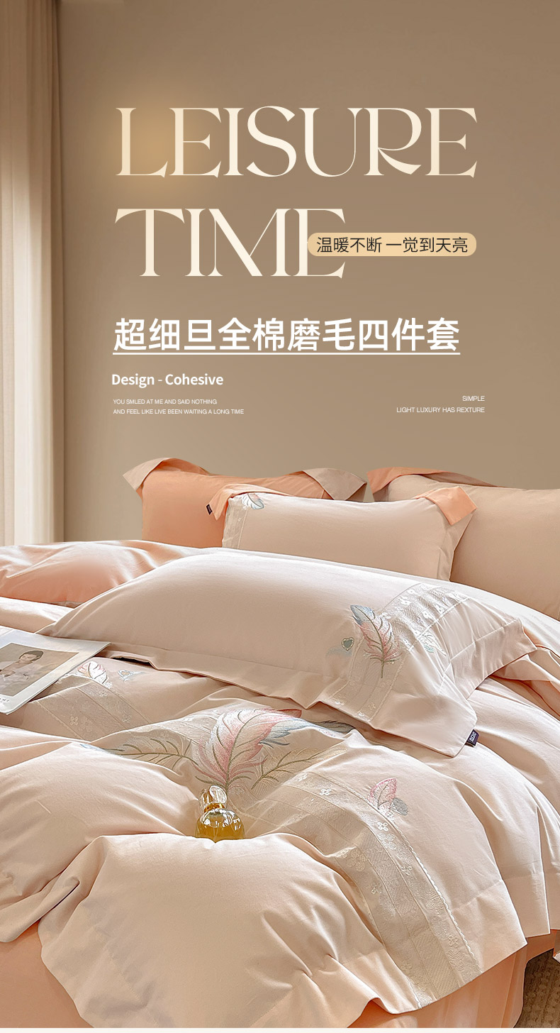 商品名称:2025秋冬新品A类加厚保暖全棉磨毛四件套纯棉被套重工刺绣轻奢床笠款直播热款床上用品 缦禾-白桃