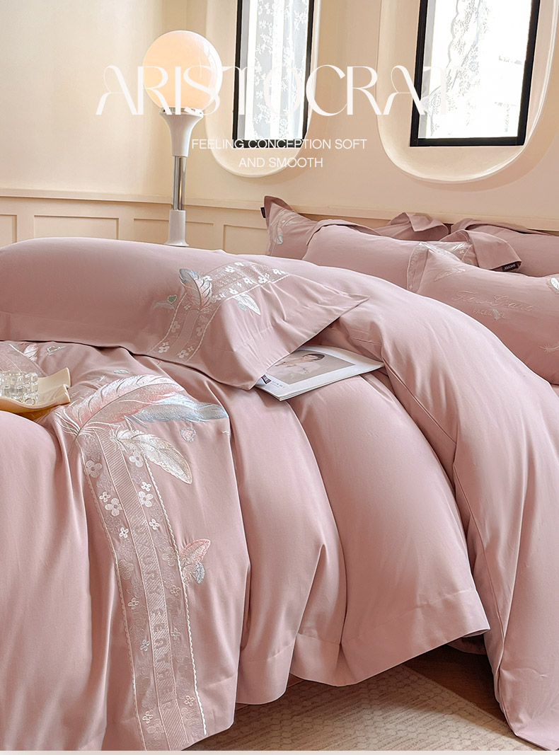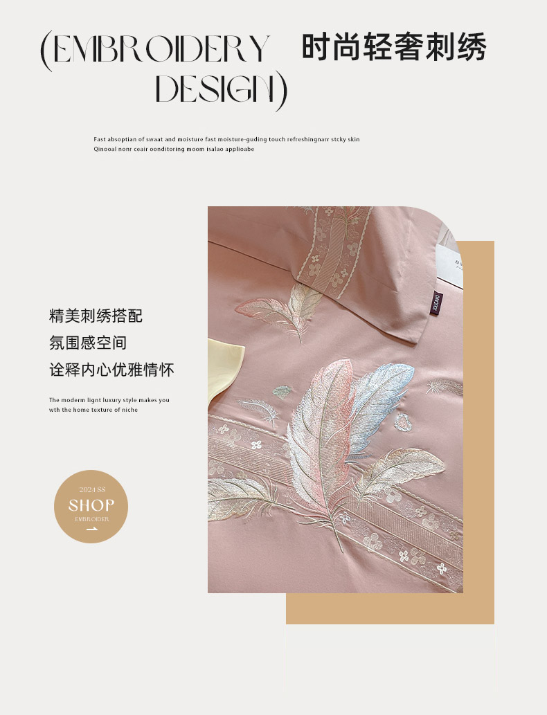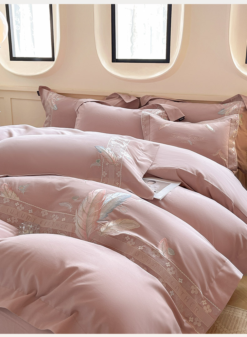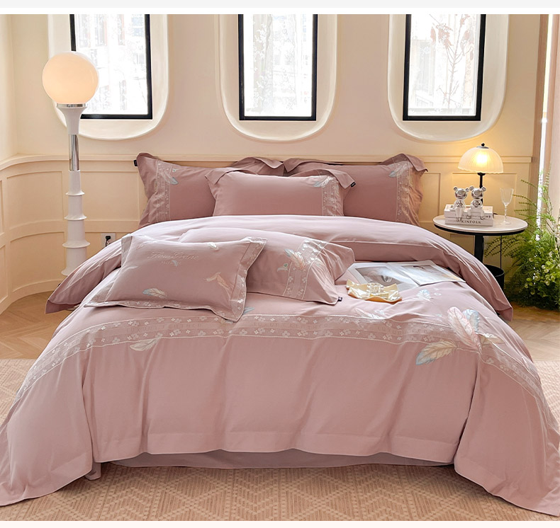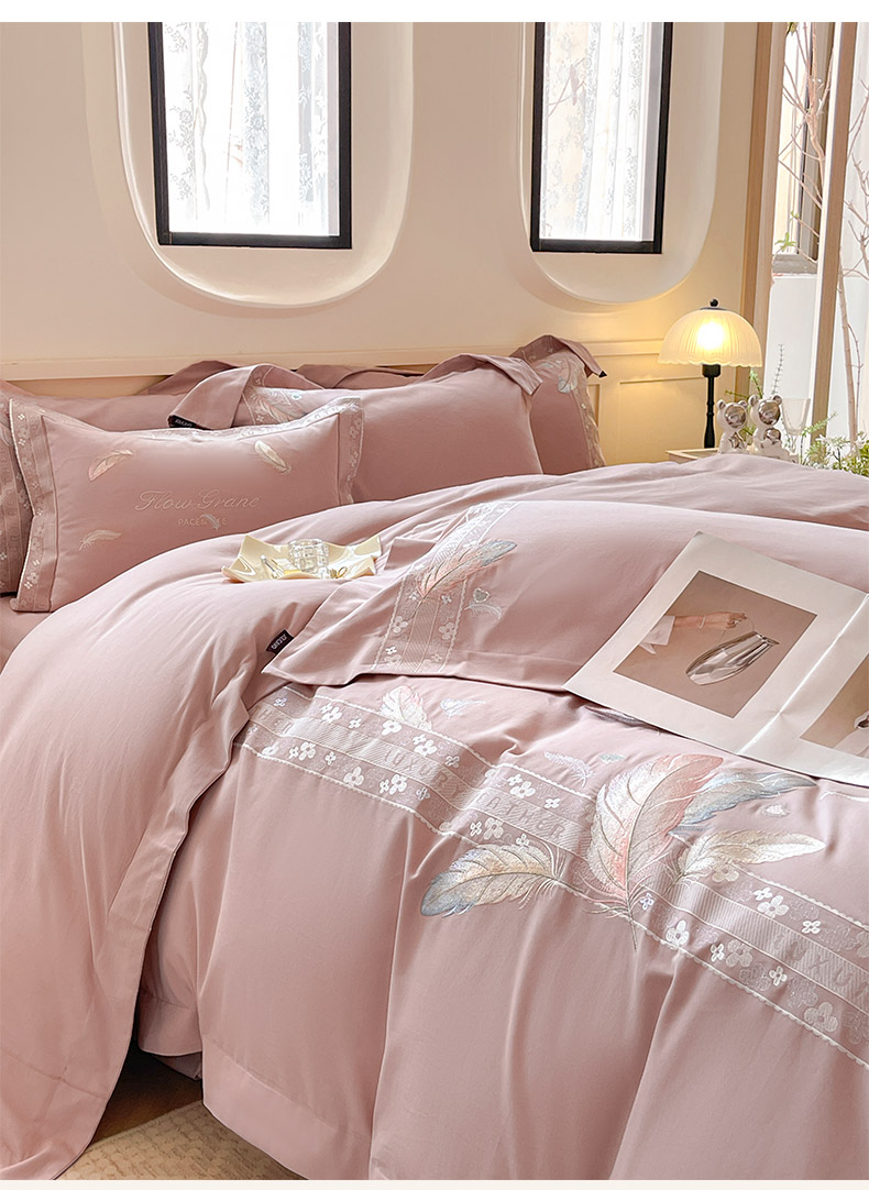 (总) 2025春夏长绒棉四件套纯棉全棉轻奢风床单被套重工刺绣床上用品,芊羽梦-白粉,芊羽梦-茶绿,芊羽梦-黛紫,芊羽梦-慕蓝,芊羽梦-颜粉