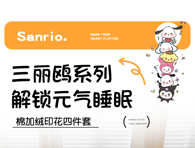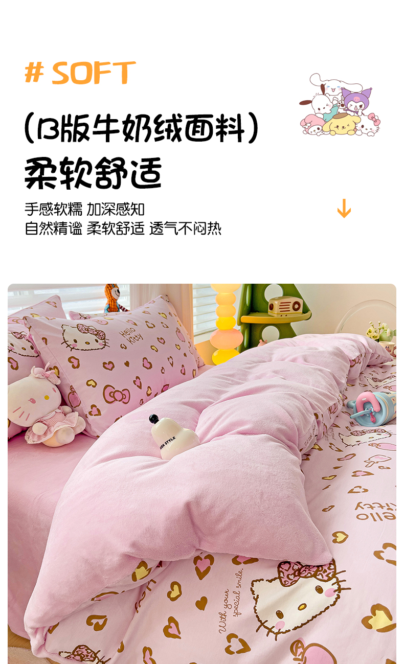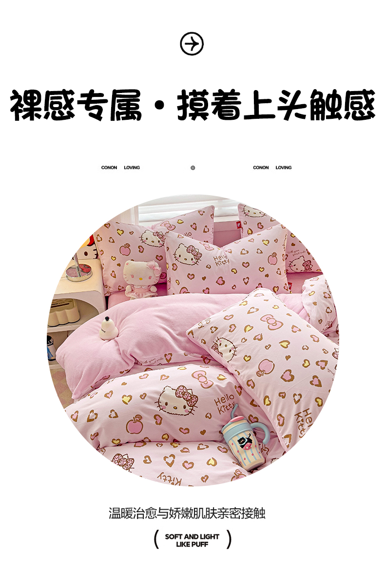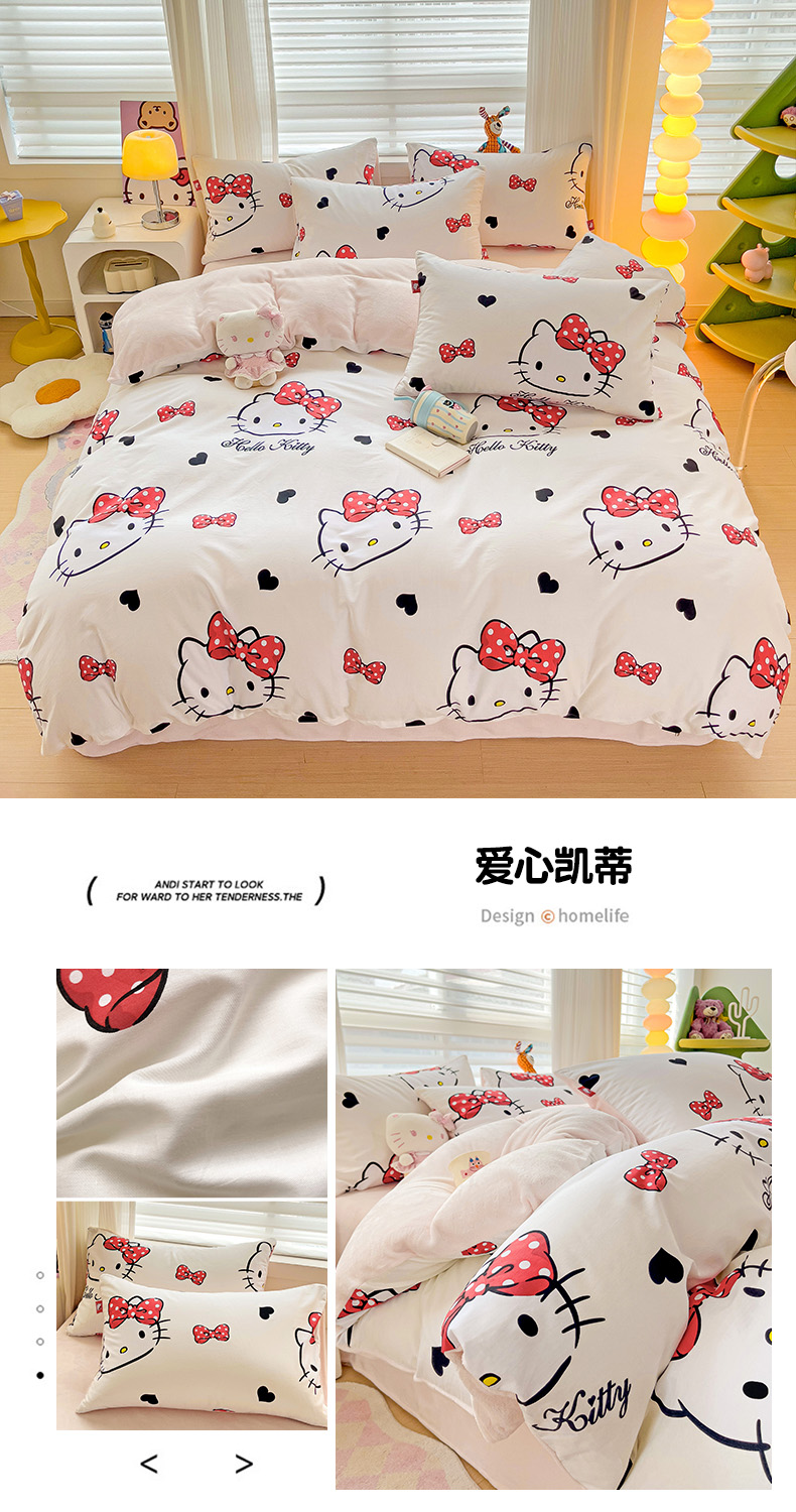 商品名称:朵希曼 2026新款棉绒卡通三丽鸥棉加绒印花系列四件套 萌宠凯蒂