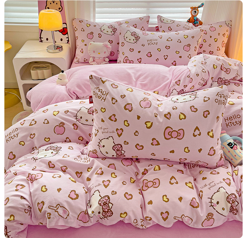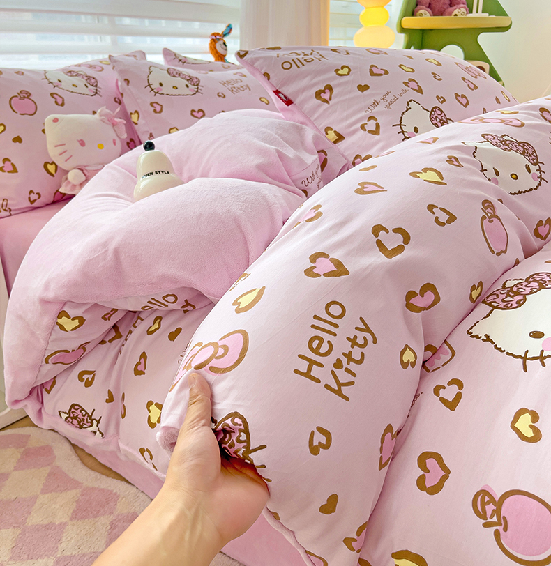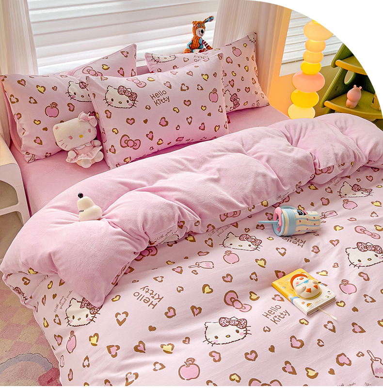 朵希曼 2026新款棉绒卡通三丽鸥棉加绒印花系列四件套 萌宠凯蒂