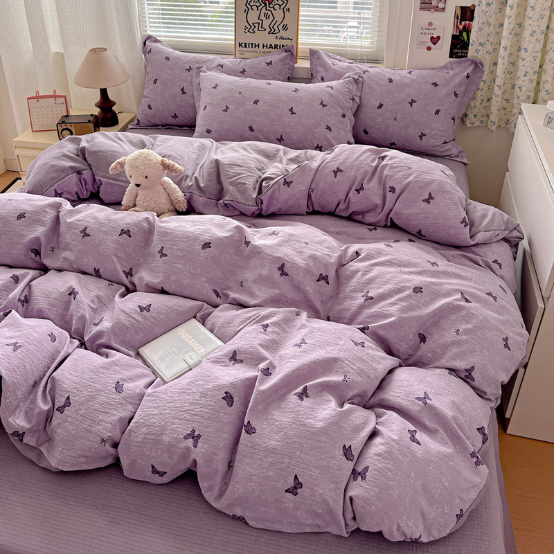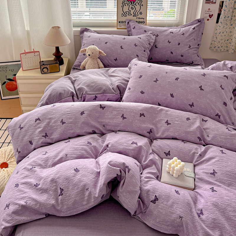 仟网汇 2025新款古法水洗棉小布袋四件套 幻梦蝶影