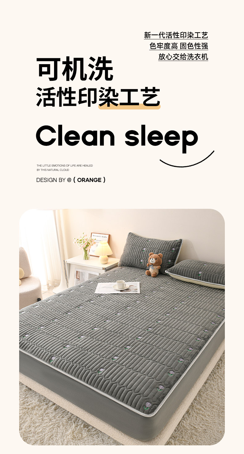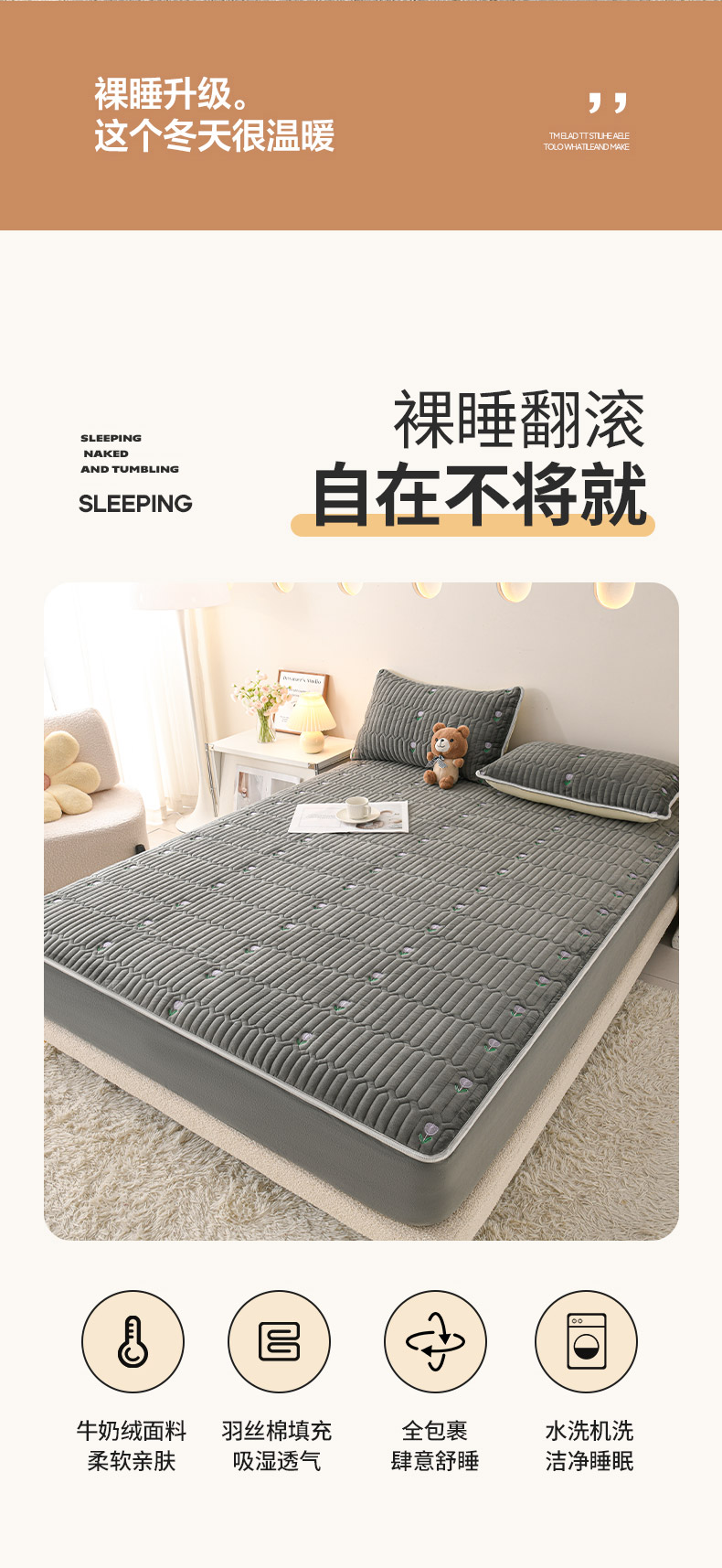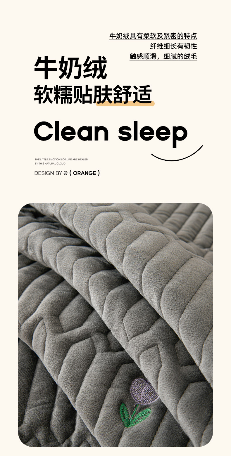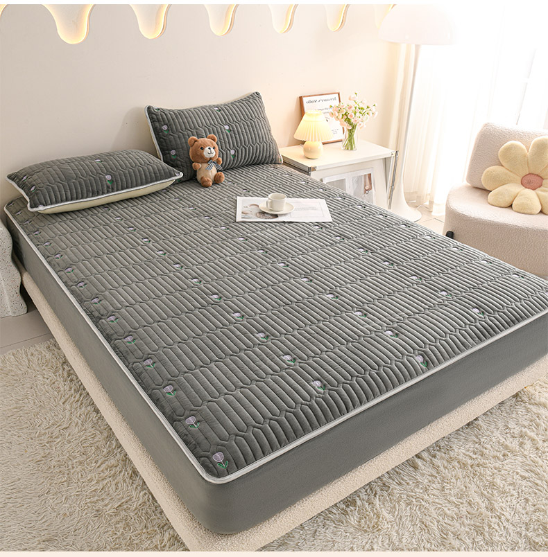 • 91家纺网 家纺一手货源 找家纺 推推家纺 2025新款刺绣夹棉宝宝绒床笠牛奶绒床垫保护套 郁金香-深灰