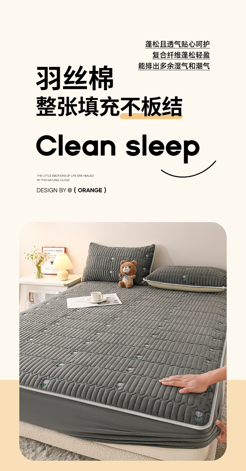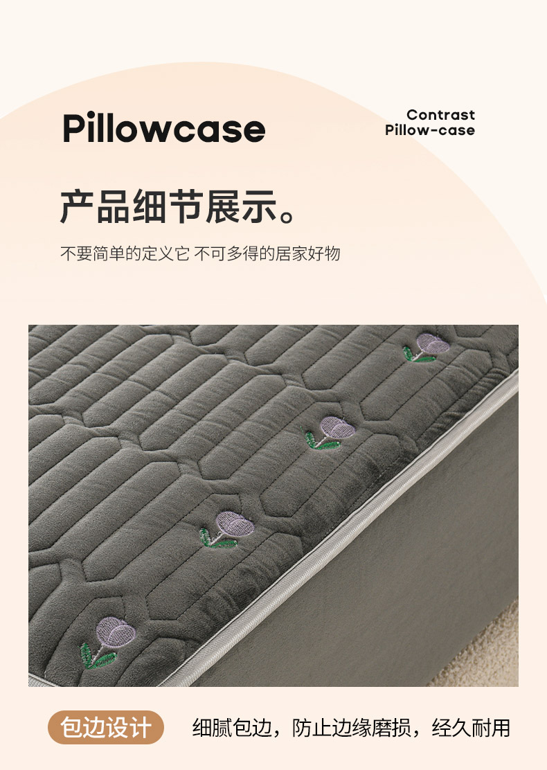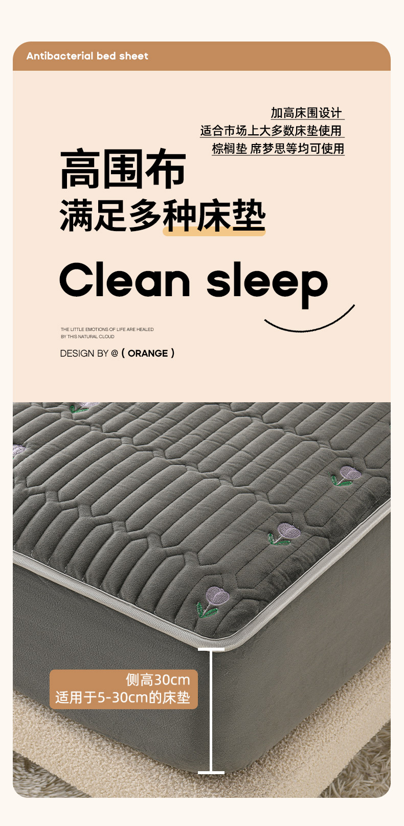 • 91家纺网 家纺一手货源 找家纺 推推家纺 2025新款刺绣夹棉宝宝绒床笠牛奶绒床垫保护套 郁金香-深灰