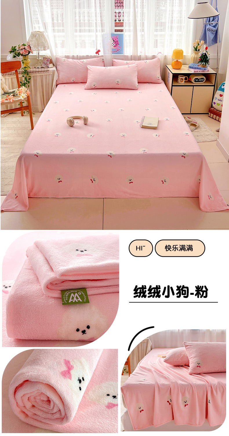 (总)水木坊 2025新款亲肤舒适牛奶绒印花单件床单,萌宠家族,蝴蝶结蓝,开心小兔,蝴蝶结黑,绒绒小狗-粉,波点世界,格子小熊,草莓软心,绒绒小狗-蓝,微笑爱心,小美甜品屋,芝士酪,组合图