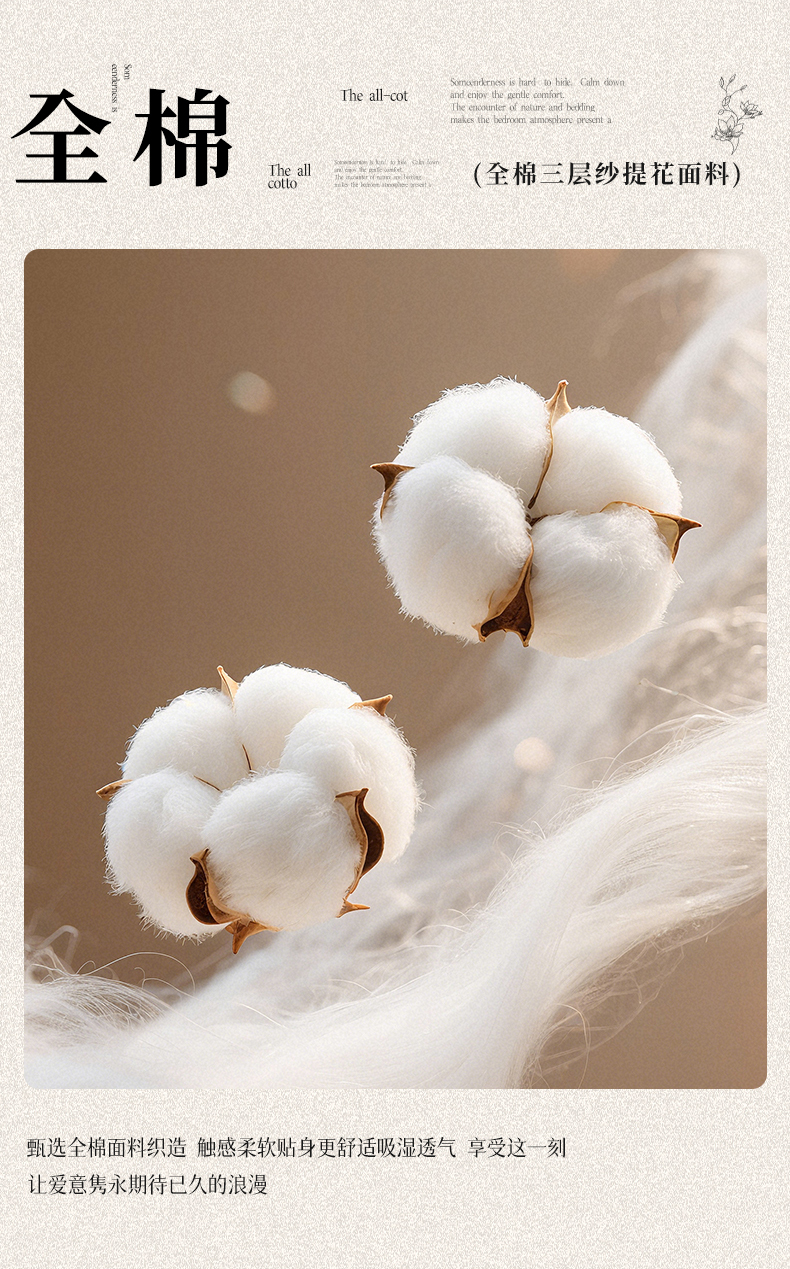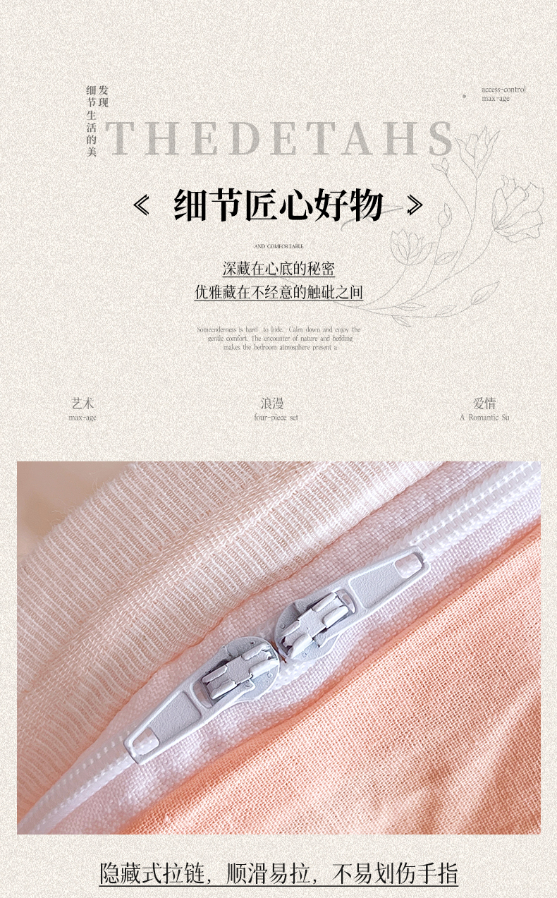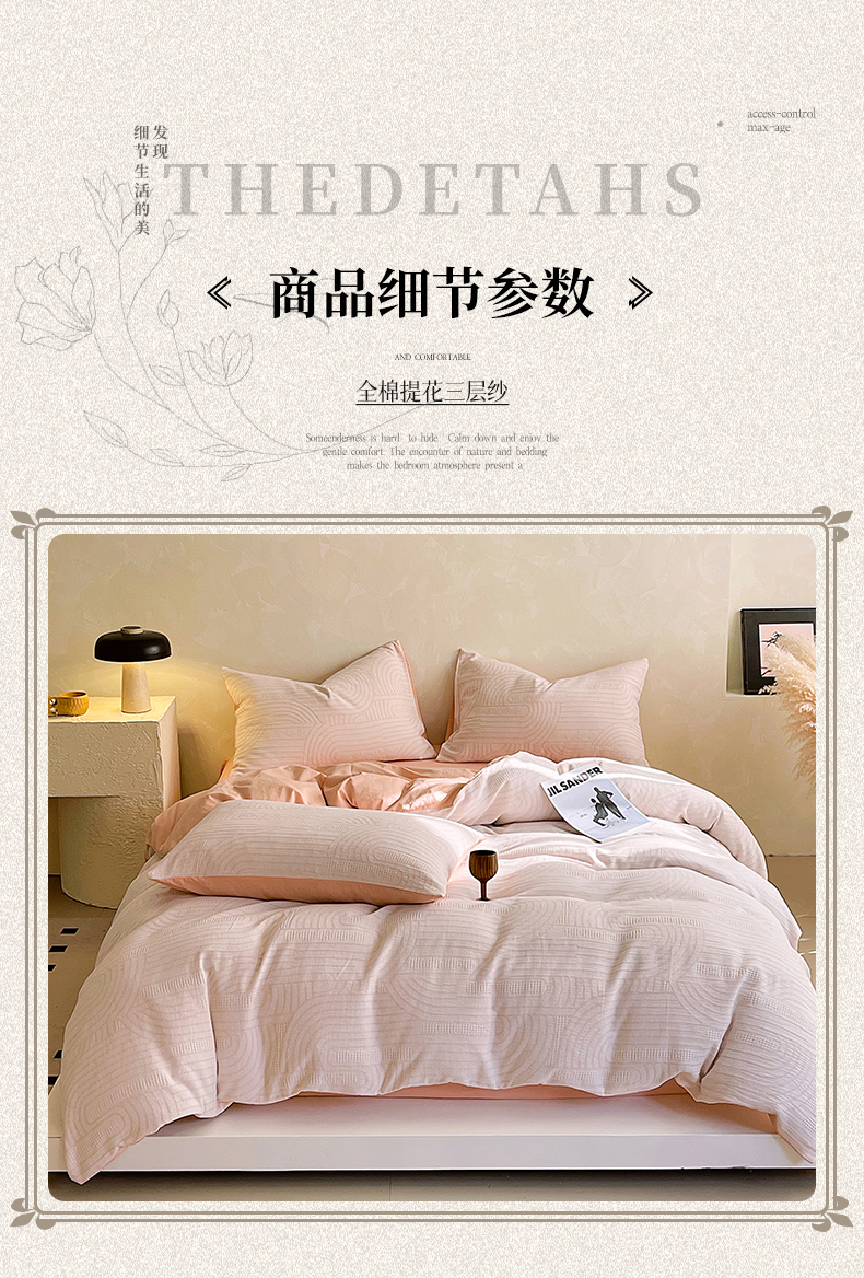 商品名称:春皖家纺 2026新款A类全棉三层纱AB版简约四件套-风格二 瑞拉-玉