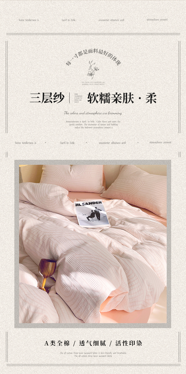 春皖家纺 2026新款A类全棉三层纱AB版简约四件套-风格二 瑞拉-玉