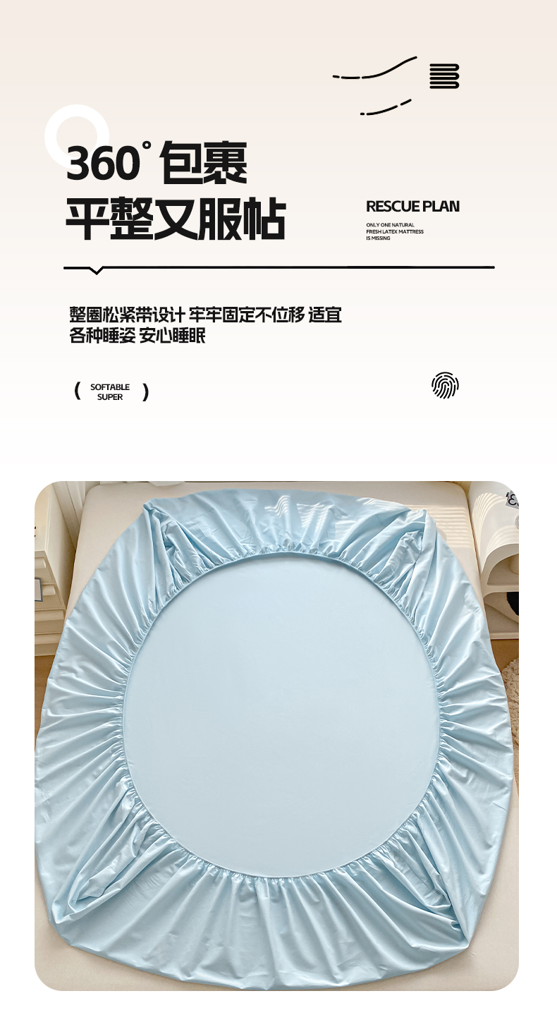 商品名称:涵宸家纺 2026新款全棉纯色单床笠-米兰 床笠-晨雾兰