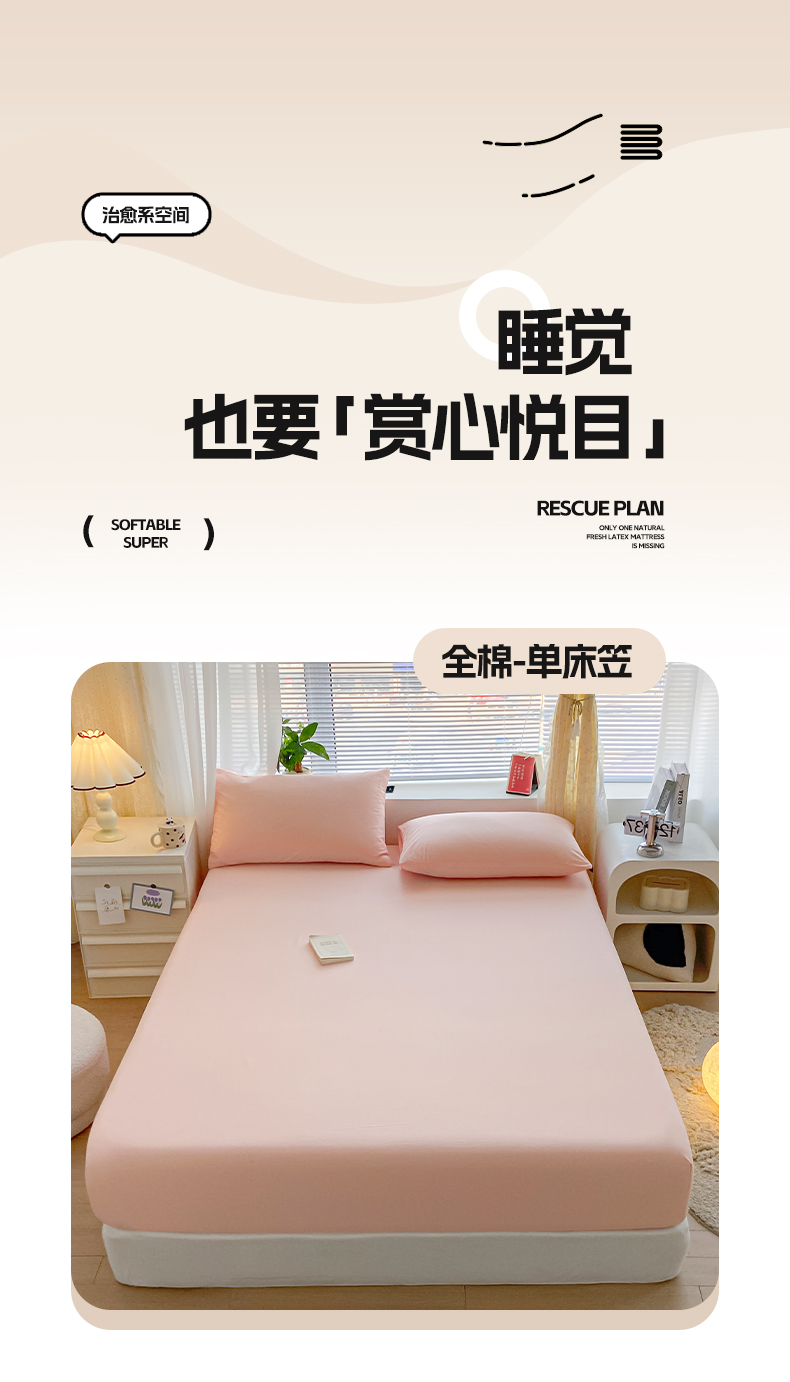 商品名称:涵宸家纺 2026新款全棉纯色单床笠-米兰 床笠-烟粉
