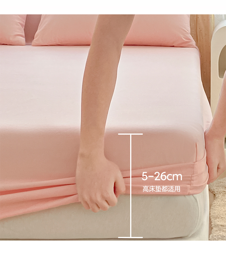 涵宸家纺 2026新款全棉纯色单床笠-米兰 床笠-烟粉