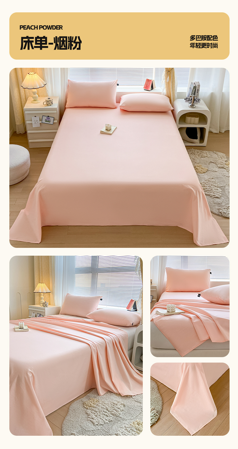 • 91家纺网 家纺一手货源 找家纺 涵宸家纺 2026新款全棉纯色单床单-米兰 床单-杏色