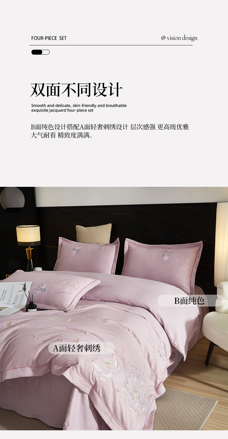 金纱玉纺家纺 2026新款轻奢工艺绣花四件套(提供买家秀) 繁花似锦-紫