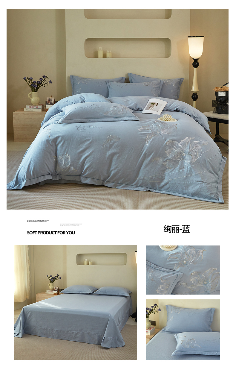 (总)金纱玉纺家纺 2025新款水洗棉工艺刺绣四件套(提供买家秀),沁颜花开-宾利蓝,沁颜花开-豆绿,沁颜花开-粉豆沙,沁颜花开-中灰,沁颜花开-紫,沁颜花开-紫豆沙,恬静时光-宾利蓝,恬静时光-豆绿,恬静时光-粉豆沙,恬静时光-中灰,恬静时光-紫,恬静时光-紫豆沙